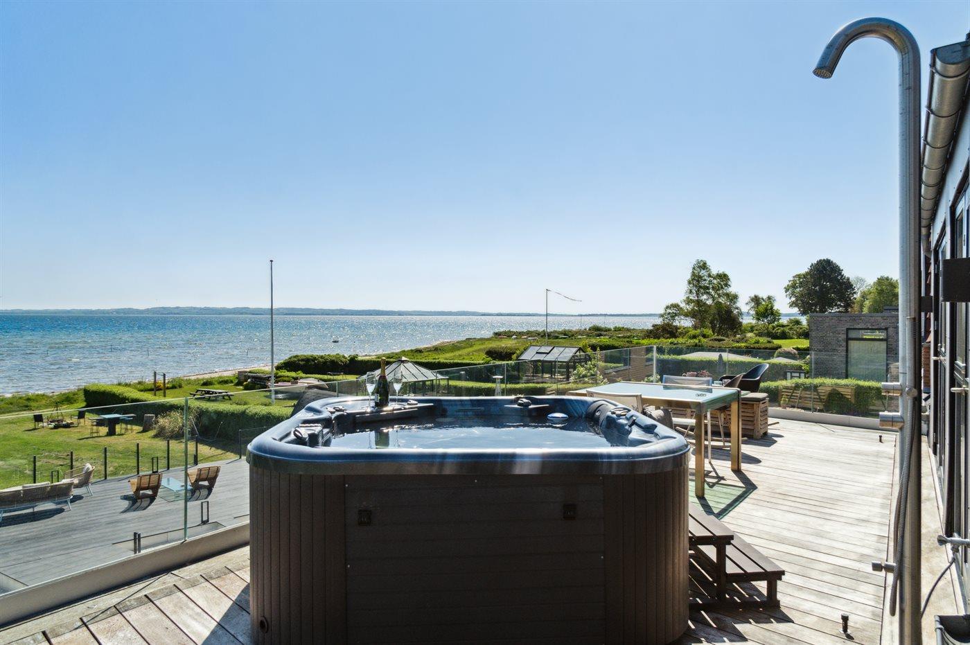 Het buitenbubbelbad (standwater) biedt ontspanning aan 6 personen.Het buiten hot tub biedt ontspanning aan 4 personen.