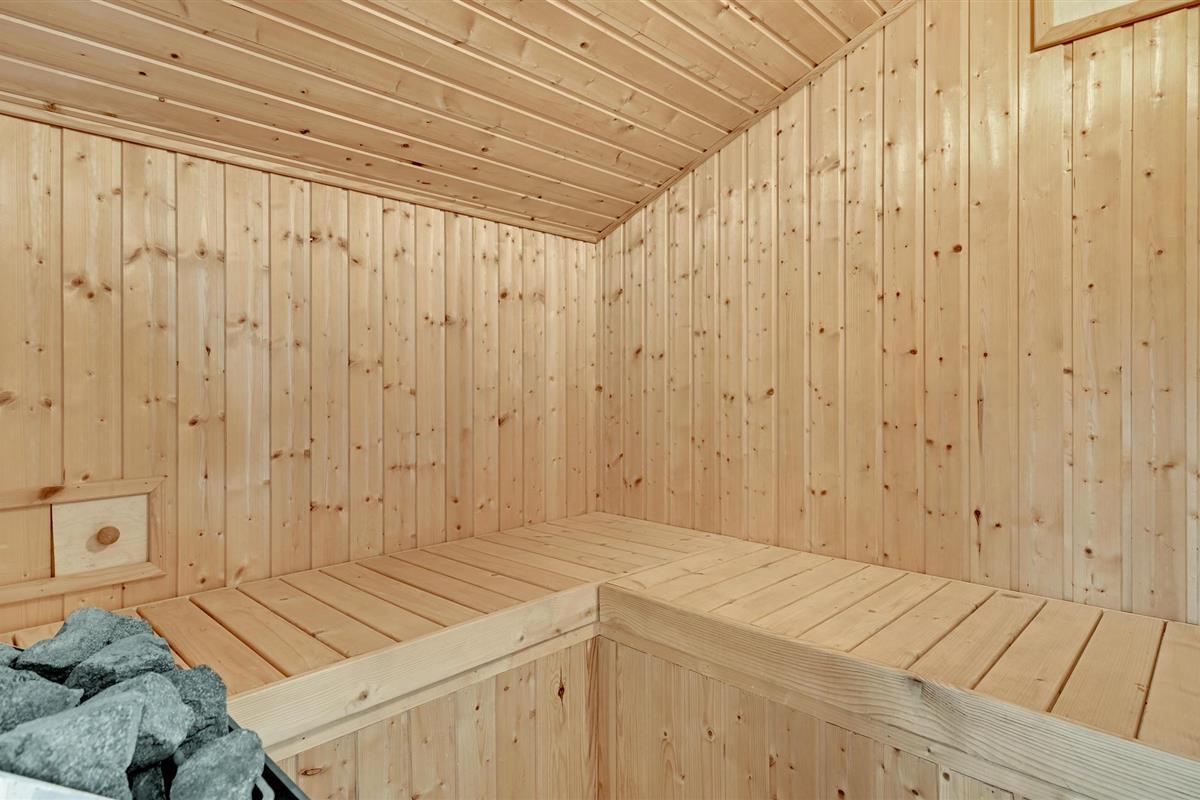 Binnen in het huis kunt u mooie kamers en een zeer aangename sfeer verwachten. Het huis maakt een zeer goede indruk dankzij het lichte interieur en de vele details van hout. De sauna nodigt uit tot rustgevende warmte bij terugkomst na een mooie herfstwandeling. Verbonden met de keuken is de woonkamer met toegang tot het terras.