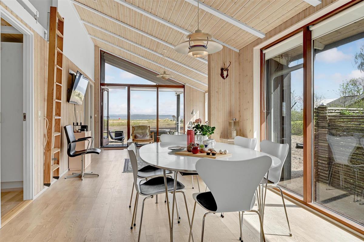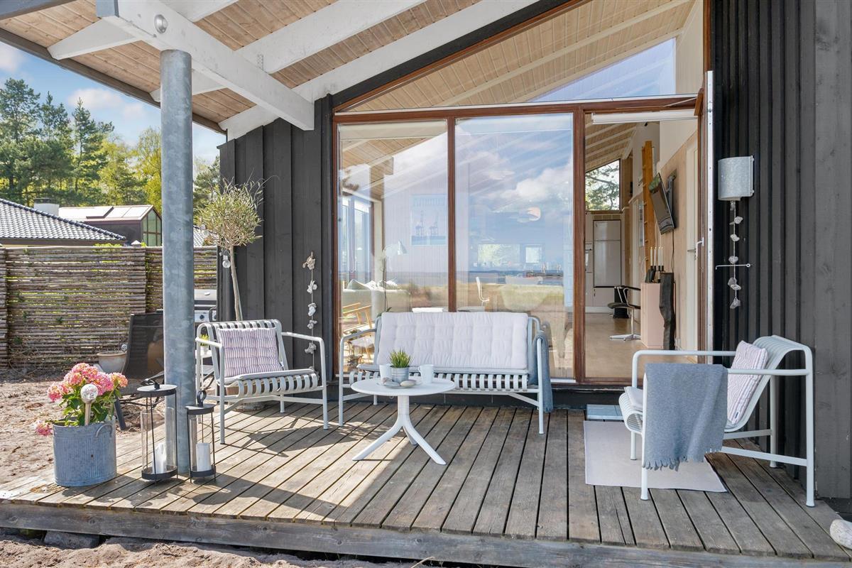Hier kunt u genieten van een prachtig uitzicht op het water met het heuvelachtige Mols Bjerge op de achtergrond en er even tussenuit - of u nu wilt barbecueën of ontspannen in het tuinmeubilair, alles staat hier voor u klaar. U heeft ook toegang tot een natuurlijk perceel met ruimte om te spelen en te ravotten in de frisse lucht.