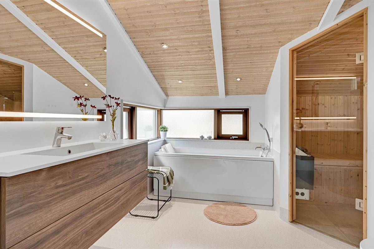 Geniet van een modern vakantiehuis met sauna en prachtig uitzicht aan het water bij Egå, Denemarken.