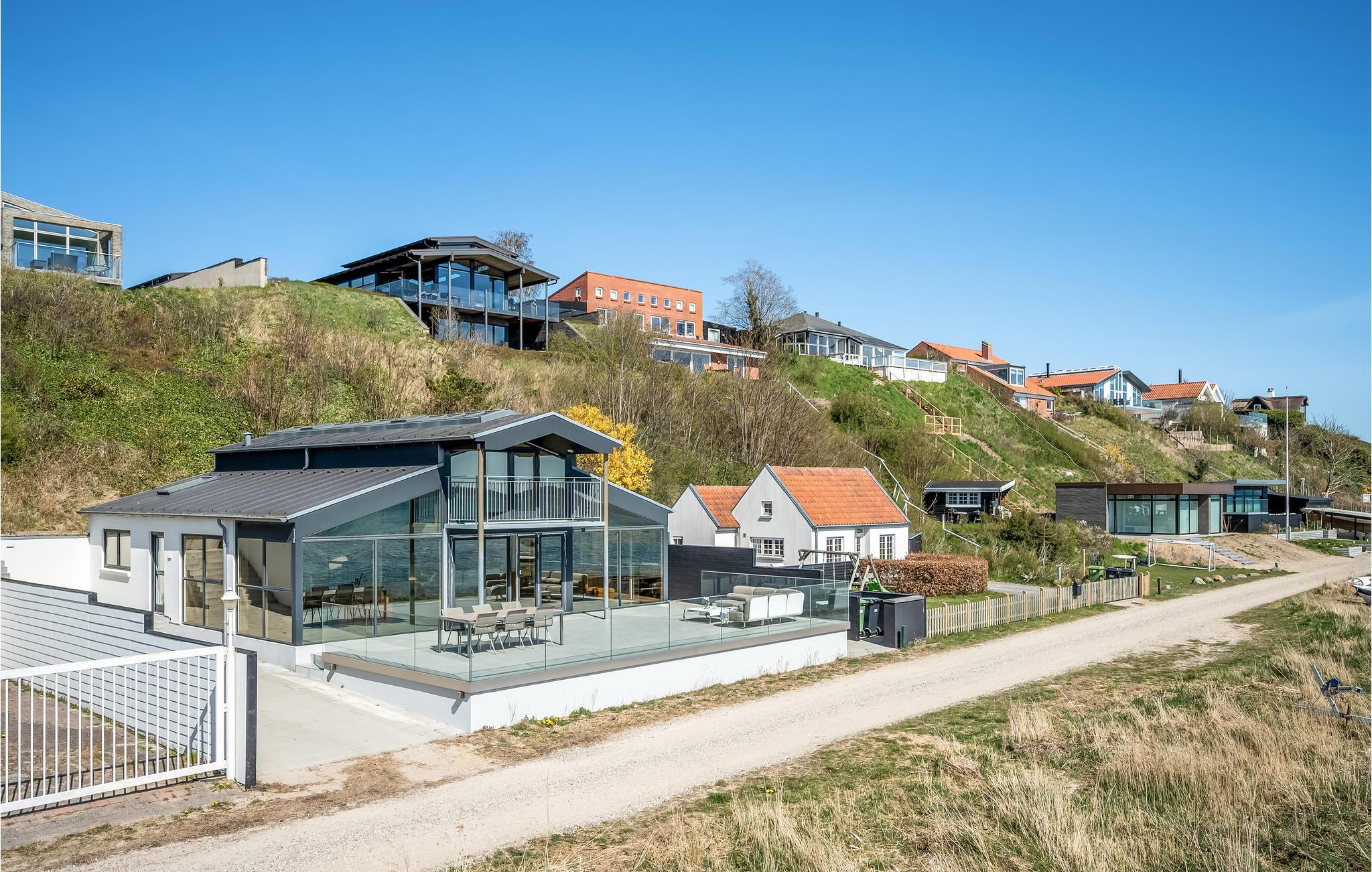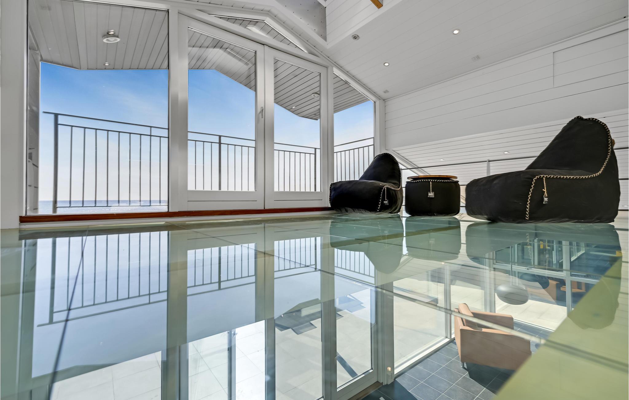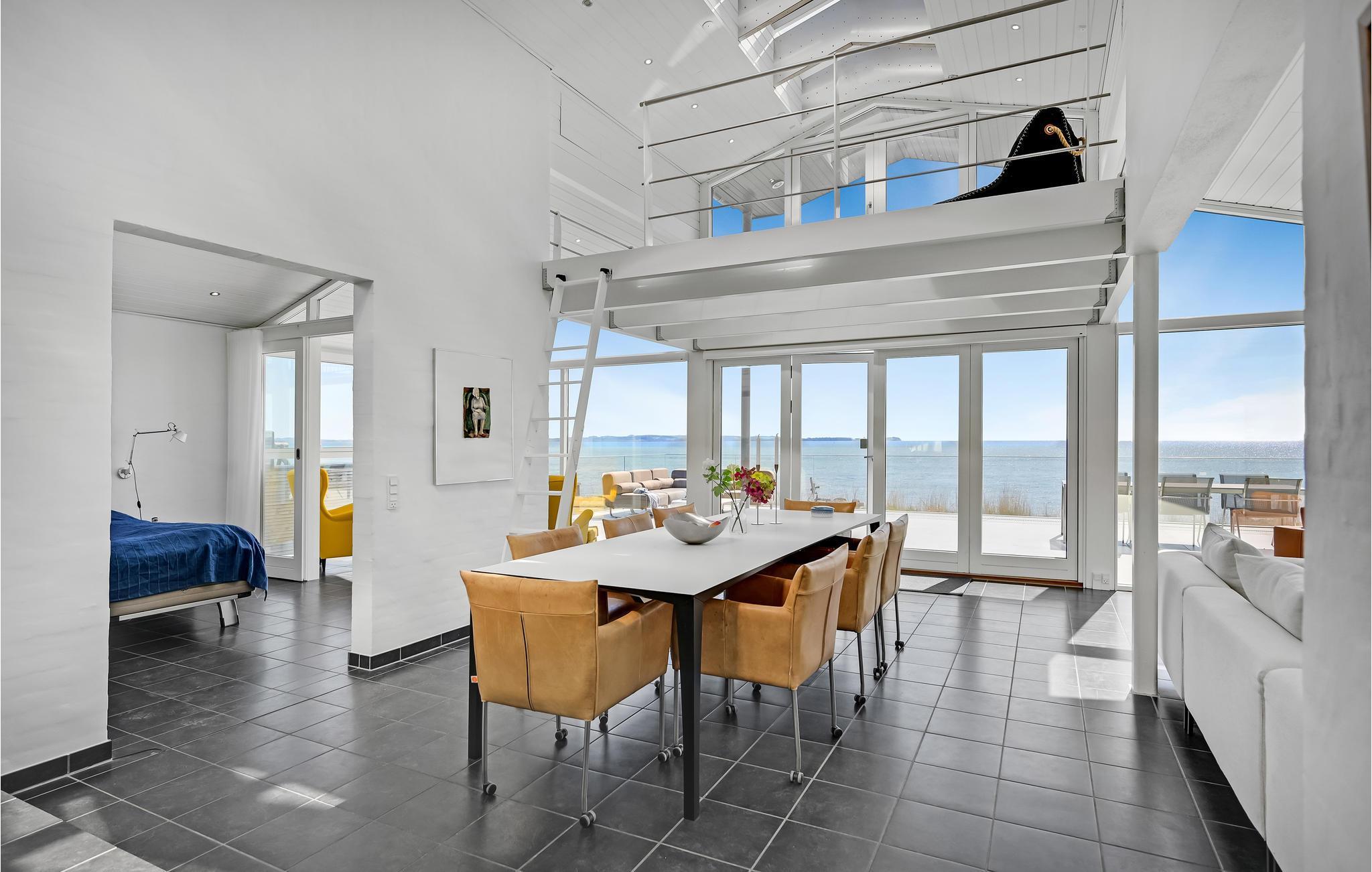 Stap binnen in een bijzonder modern vakantiehuis met een ruim woongedeelte en een royaal terras dat u een adembenemend uitzicht op zee biedt. Hier kunt u het uzelf comfortabel maken met een glas wijn in de woonkamer met een verwarmende open haard en vloerverwarming. Het hoge plafond en de spannende constructie hiervan bieden u voldoende ruimte om te ademen en ook een ruimtelijk gevoel. Dankzij de grote vensterpuien komt er ongelooflijk veel licht binnen, wat bijdraagt aan de vriendelijke flair. Het open terras met tuinmeubelen en barbecue is een heerlijke plek om te genieten van een barbecue of een heerlijk ontbijt.