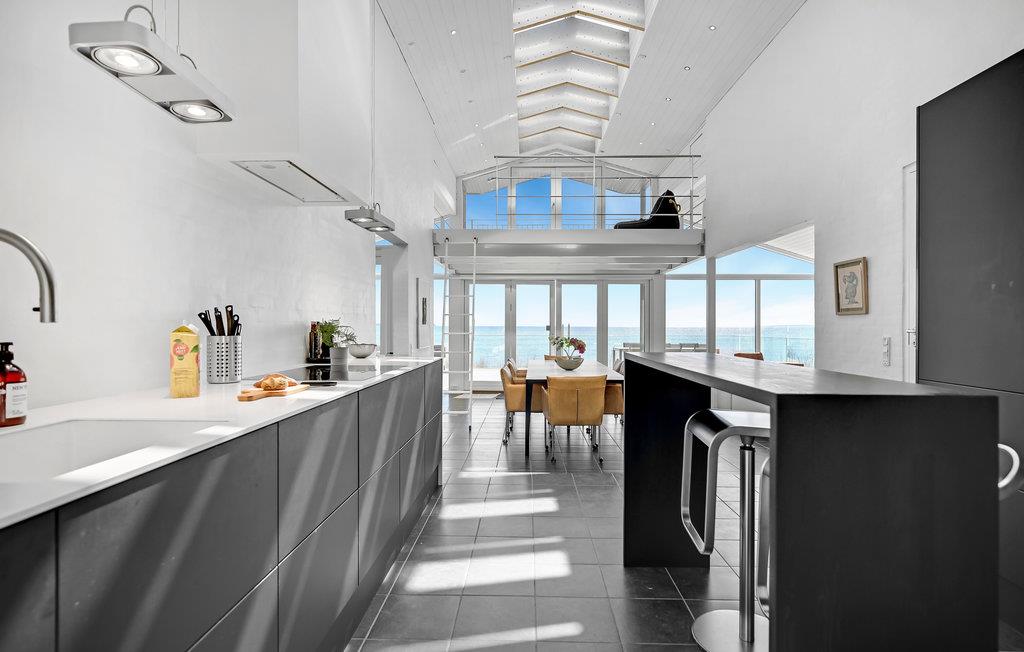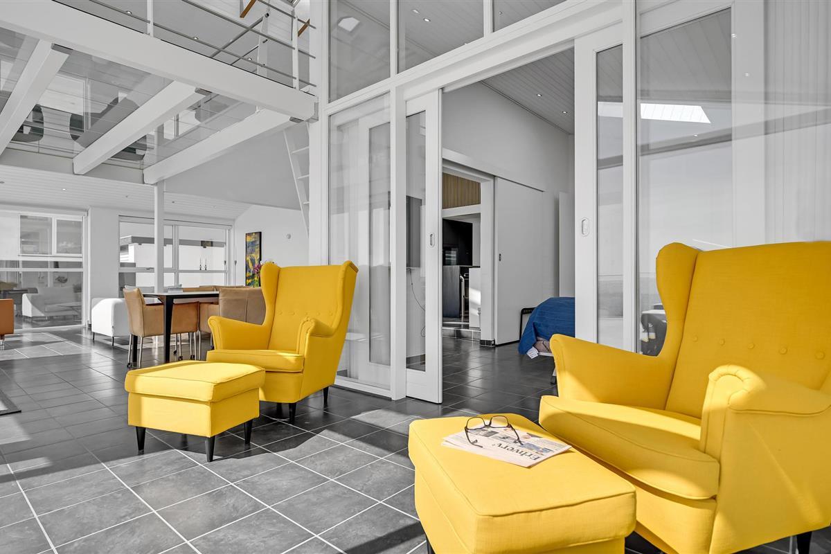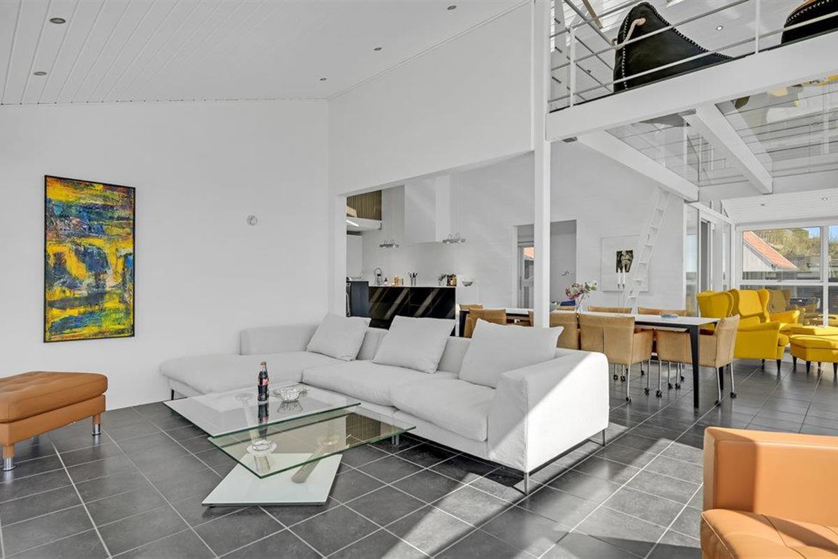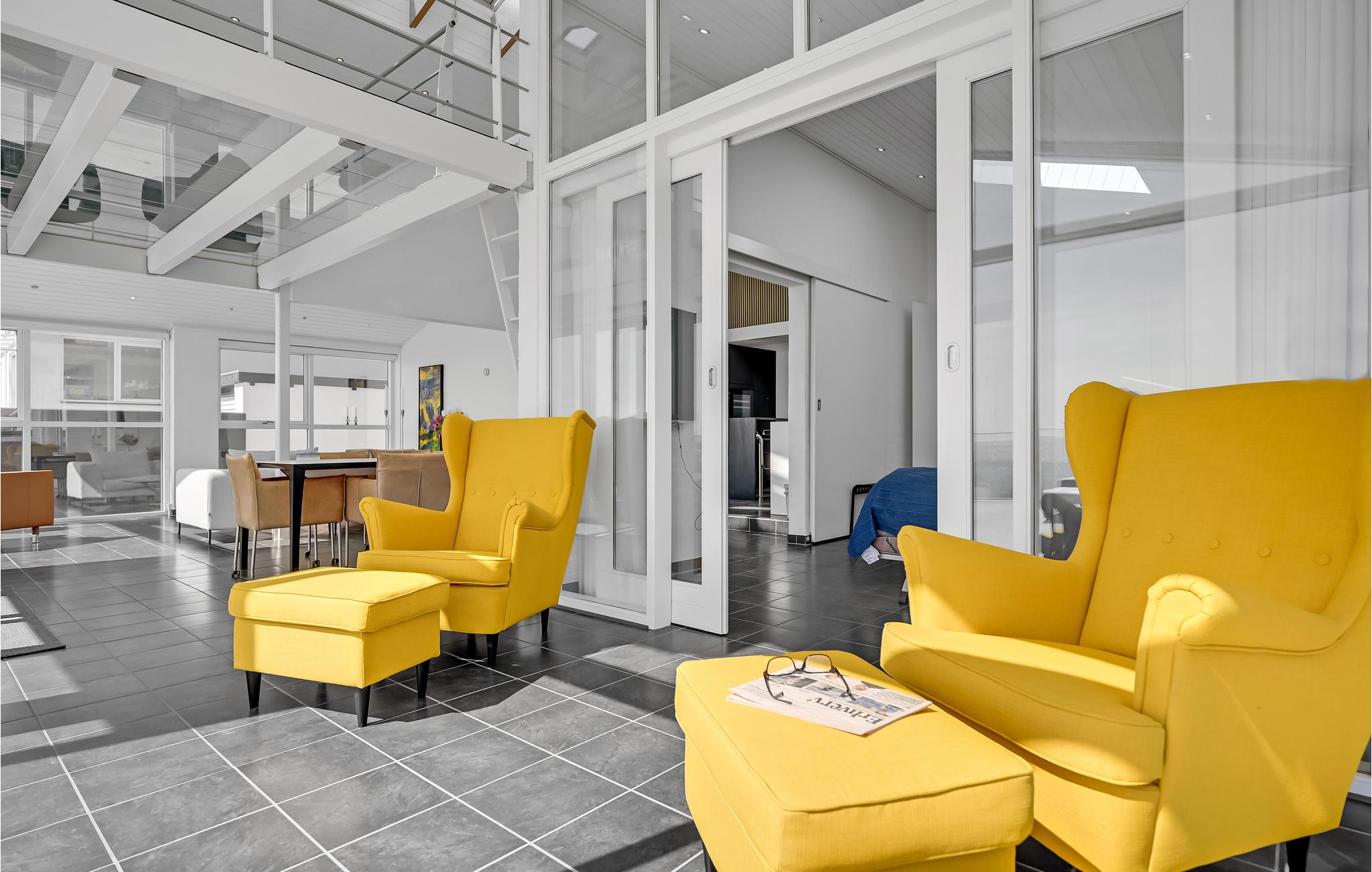 Stap binnen in een bijzonder modern vakantiehuis met een ruim woongedeelte en een royaal terras dat u een adembenemend uitzicht op zee biedt. Hier kunt u het uzelf comfortabel maken met een glas wijn in de woonkamer met een verwarmende open haard en vloerverwarming. Het hoge plafond en de spannende constructie hiervan bieden u voldoende ruimte om te ademen en ook een ruimtelijk gevoel. Dankzij de grote vensterpuien komt er ongelooflijk veel licht binnen, wat bijdraagt aan de vriendelijke flair. Het open terras met tuinmeubelen en barbecue is een heerlijke plek om te genieten van een barbecue of een heerlijk ontbijt.