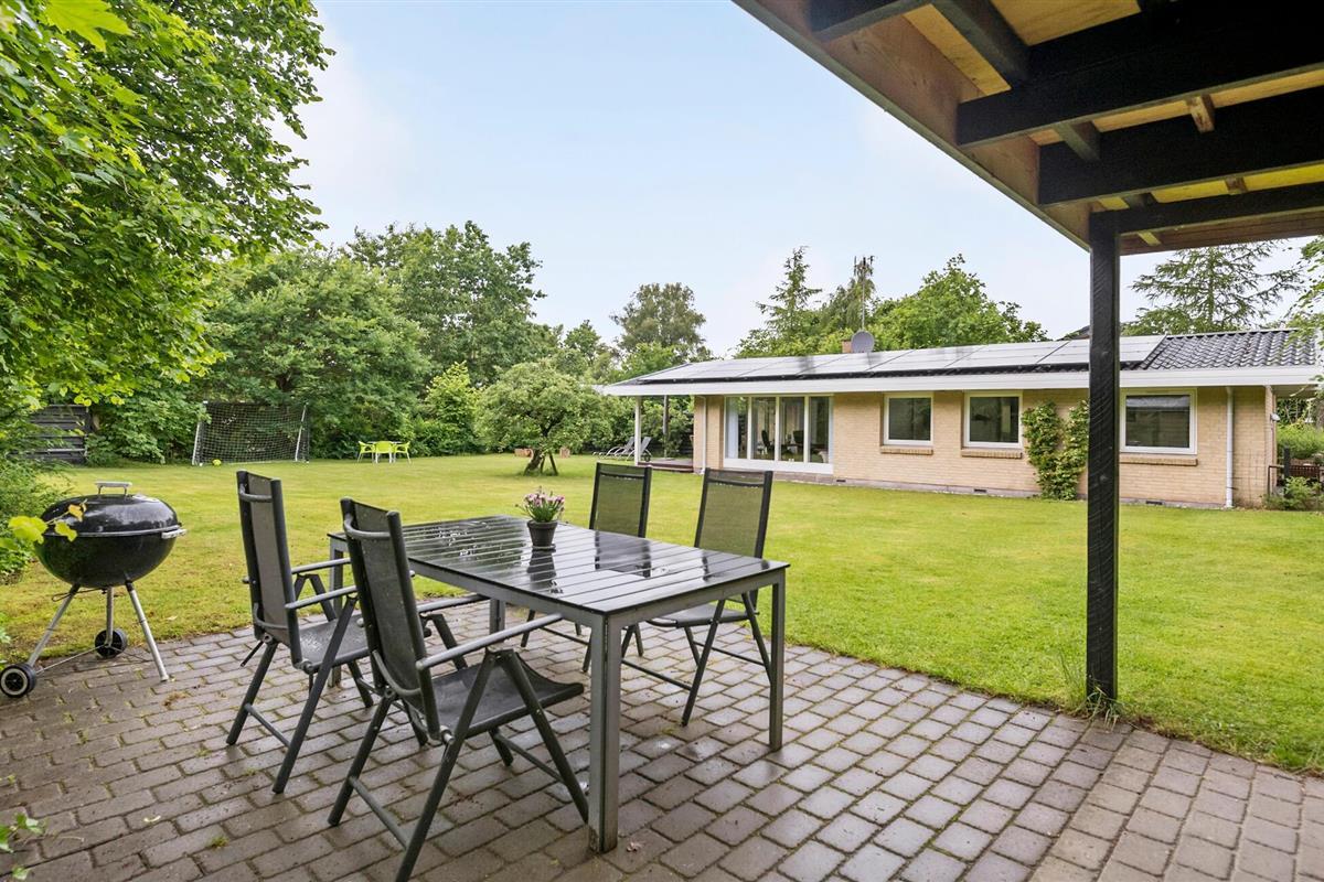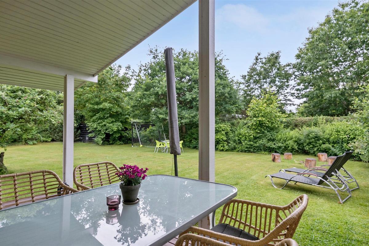Stap de ruime tuin in en ontspan op de gezellige ligstoelen. Het brede gazon nodigt je uit om te spelen en te luieren. Gebruik de natuurlijke zitplaatsen rond de kampvuurplaats voor gezellige avonden in de buitenlucht. Het overdekte terras is de ideale plek om buiten te eten.