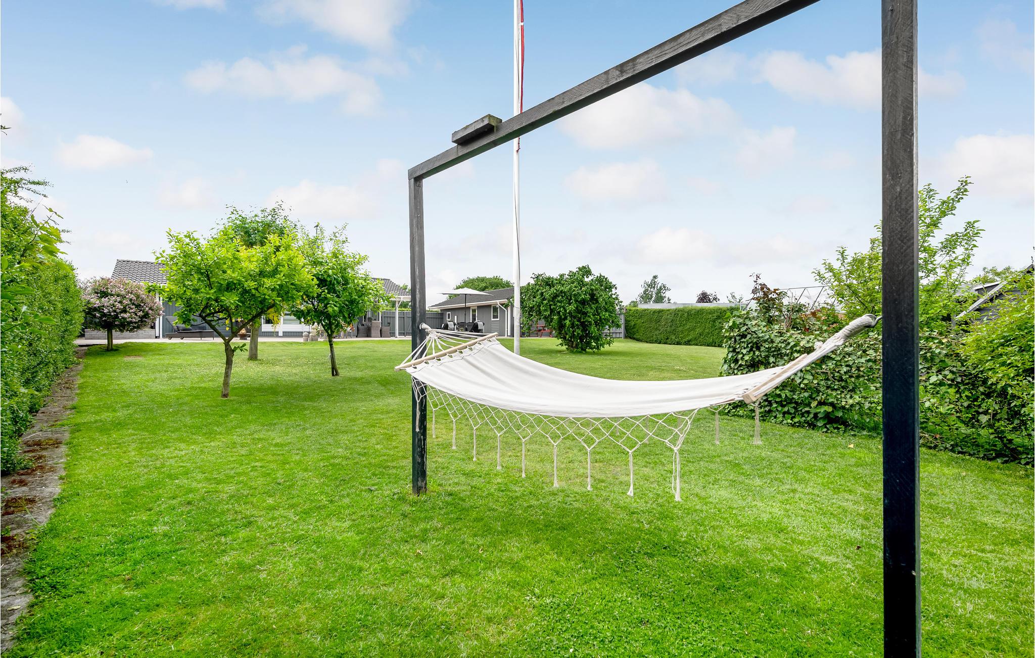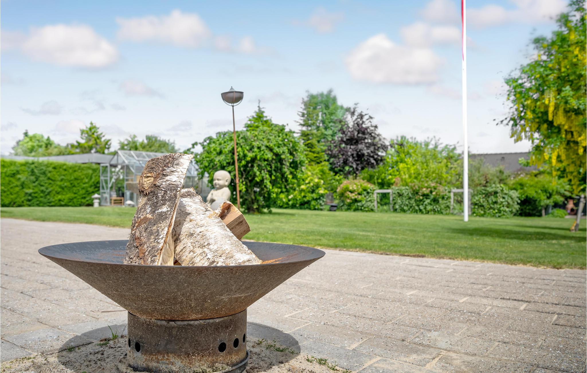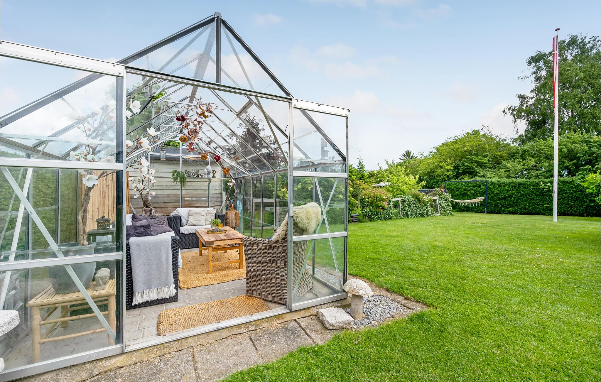 Vakantiehuis nabij Skæring Strand met tuin, terrassen en windsurfmogelijkheden.