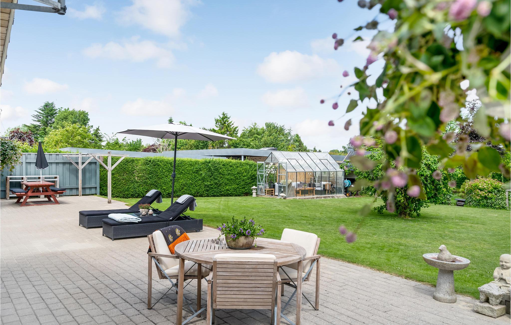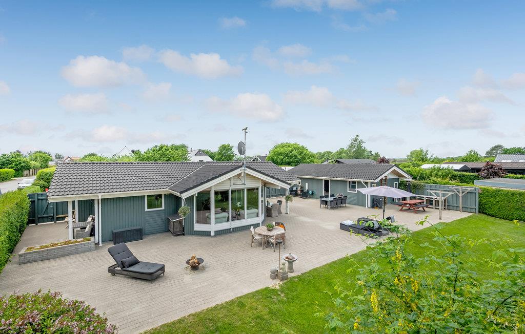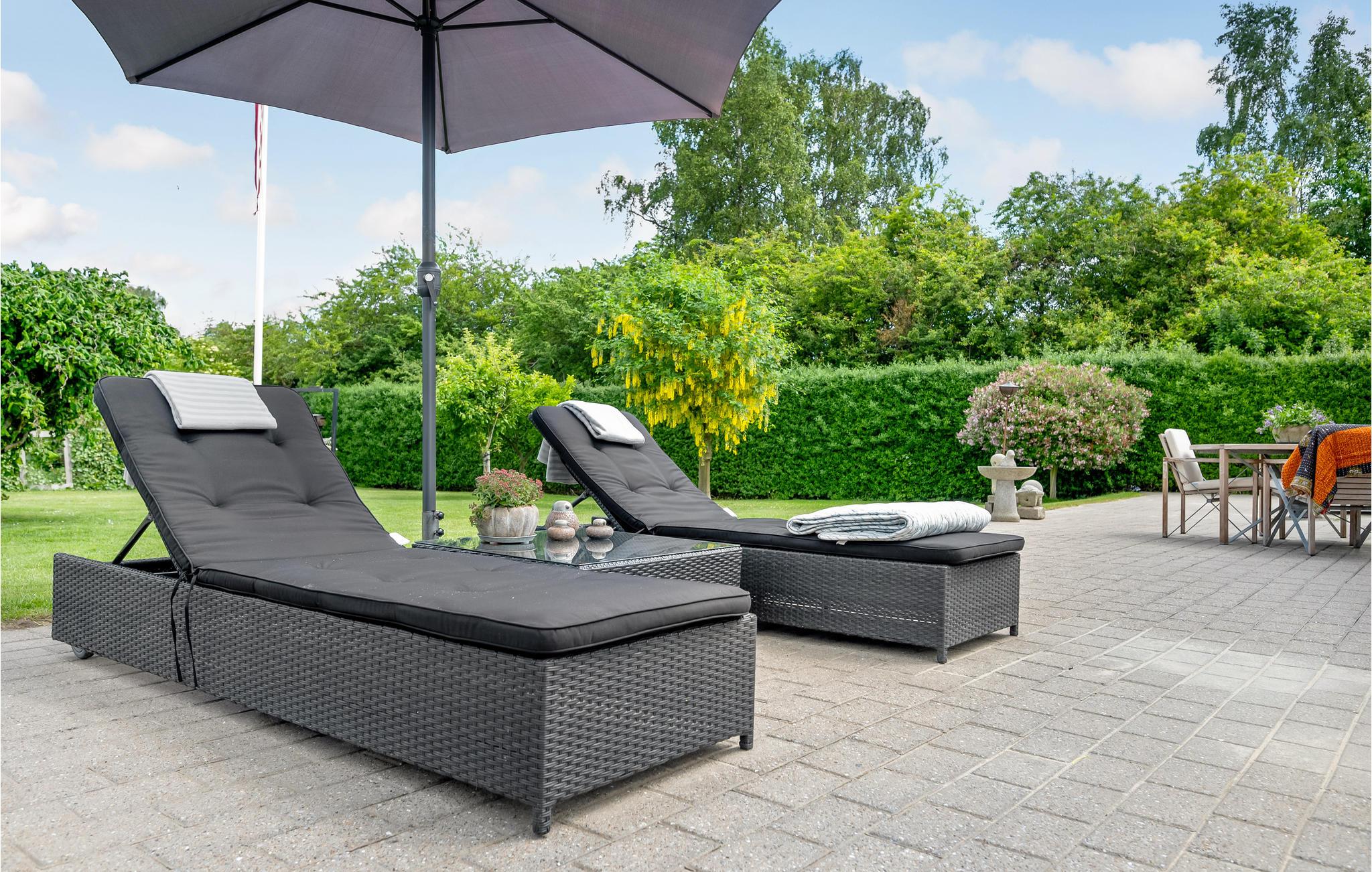 Vakantiehuis nabij Skæring Strand met tuin, terrassen en windsurfmogelijkheden.