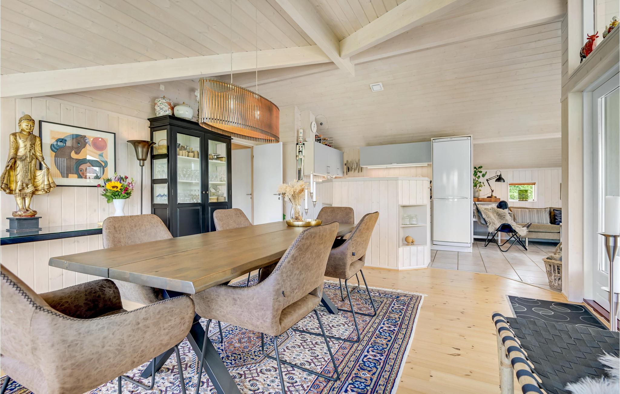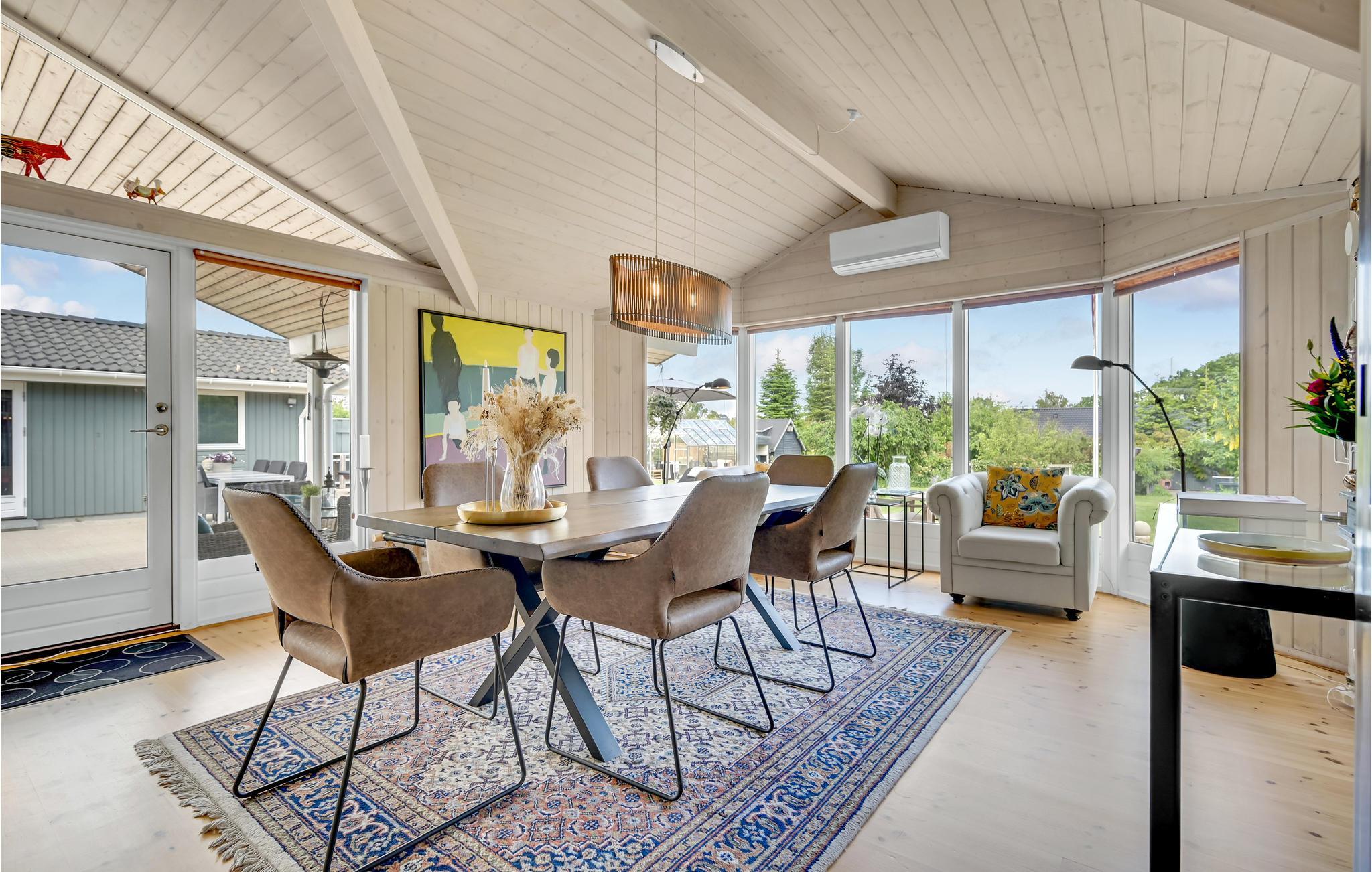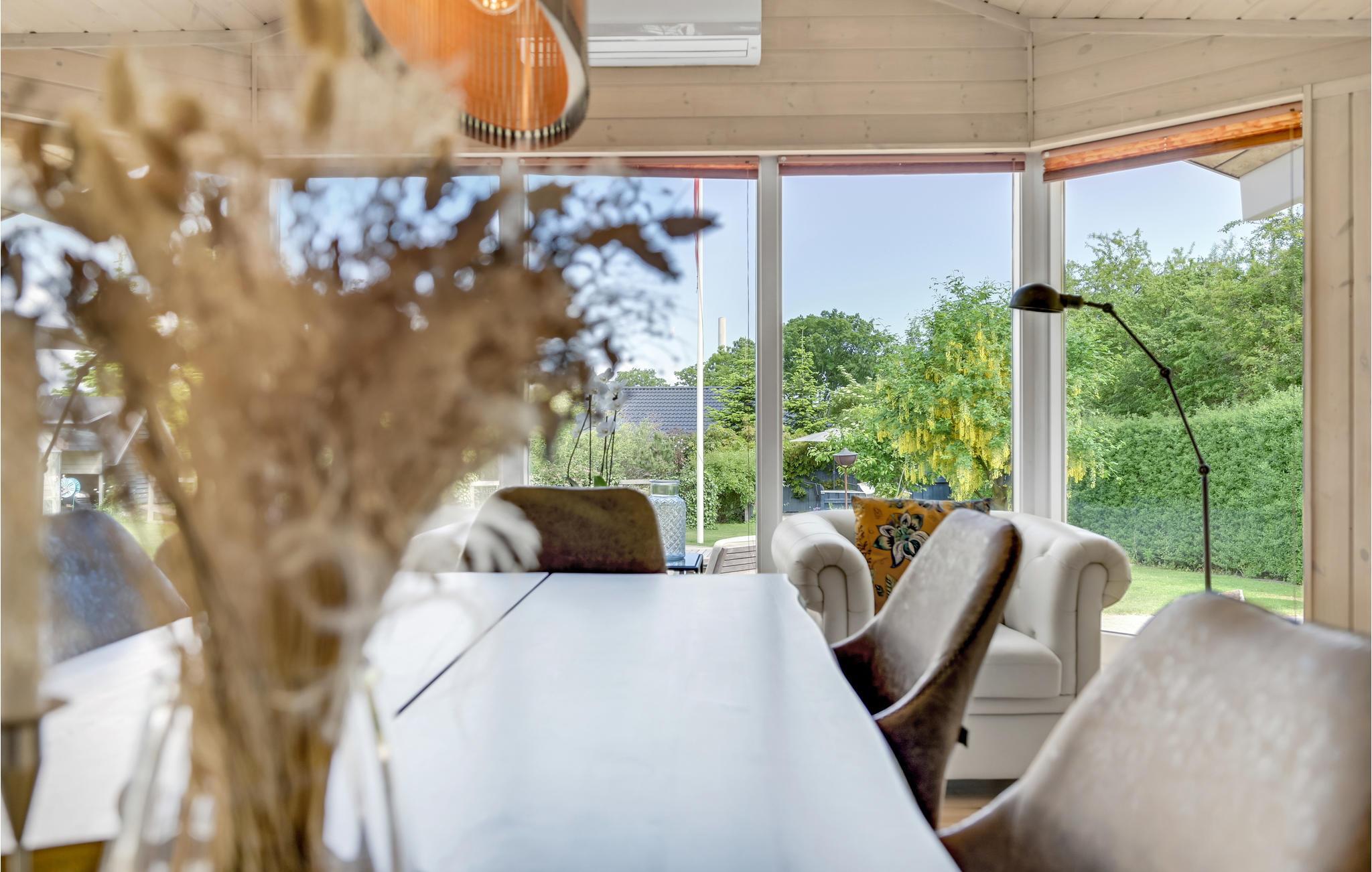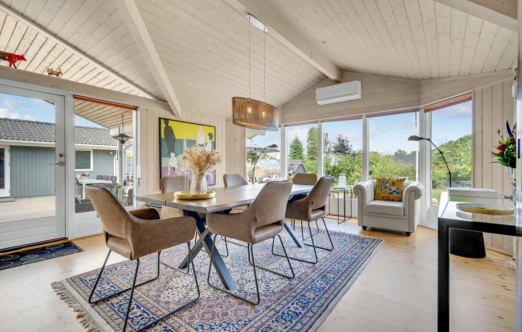 Trakteer jezelf op een welverdiende pauze van de drukte van alledag in de buurt van Skæring Strand. Binnen word je begroet door een stijlvolle combinatie van heldere en warme kleuren, hoge plafonds, modern en smaakvol meubilair en een overvloed aan natuurlijk licht dat door de grote ramen naar binnen stroomt. Dit alles geeft je een gevoel van lichtheid, ruimte, rust en harmonie. In de goed uitgeruste keuken kun je uitkijken naar spannende kookervaringen met je kinderen, en de eettafel is de ideale plek voor een gezellig samenzijn met bord- of kaartspellen.