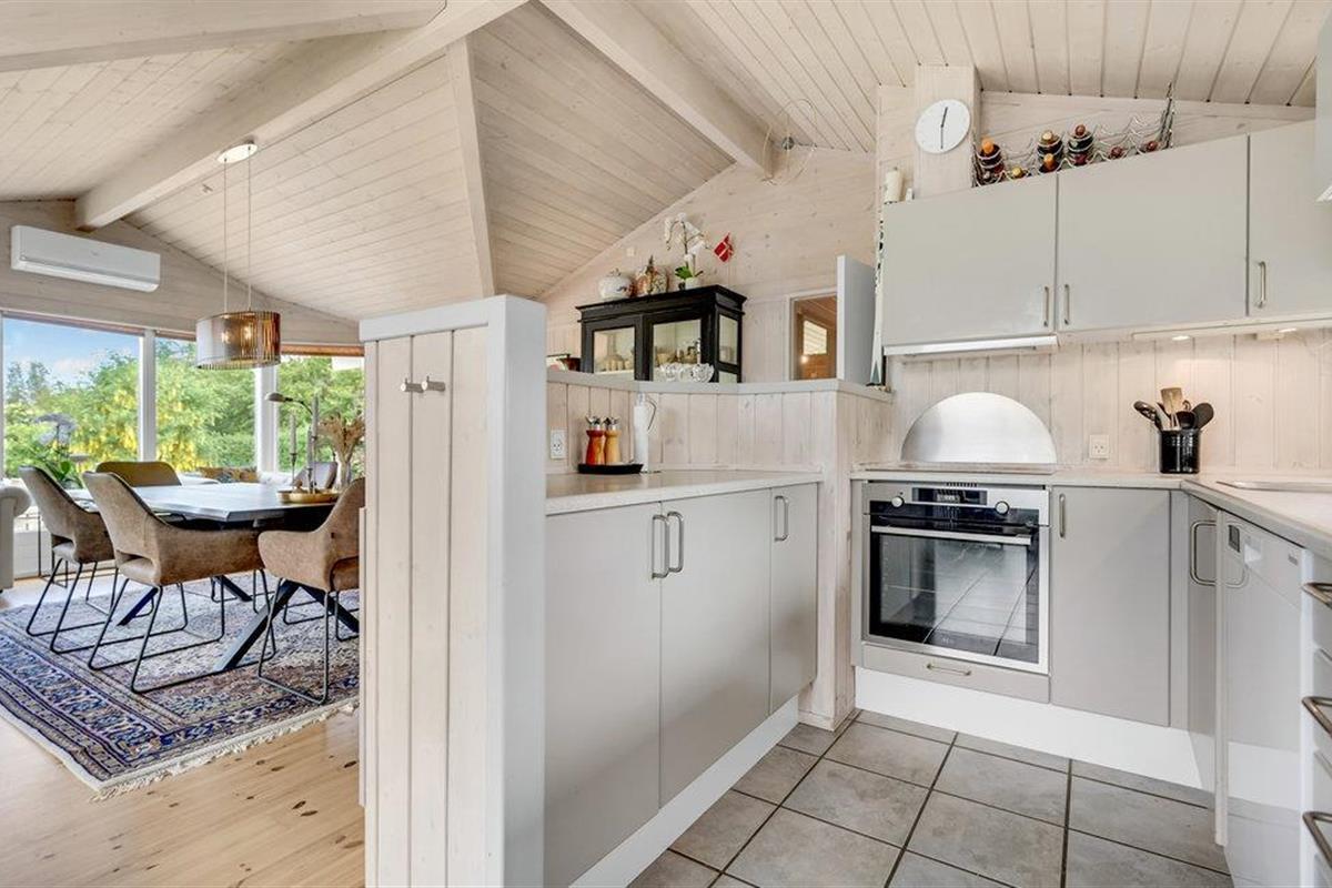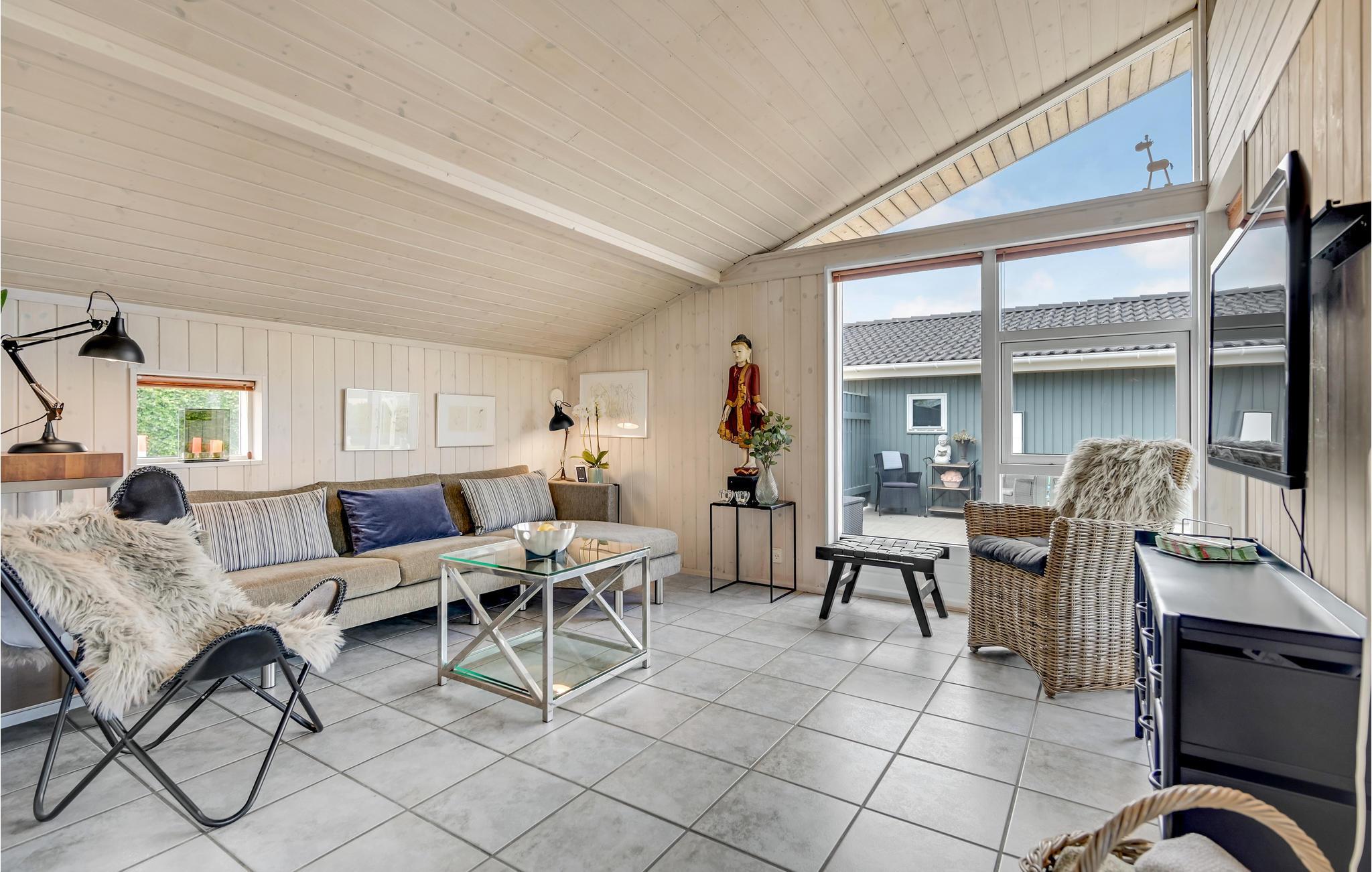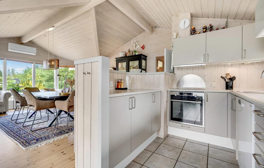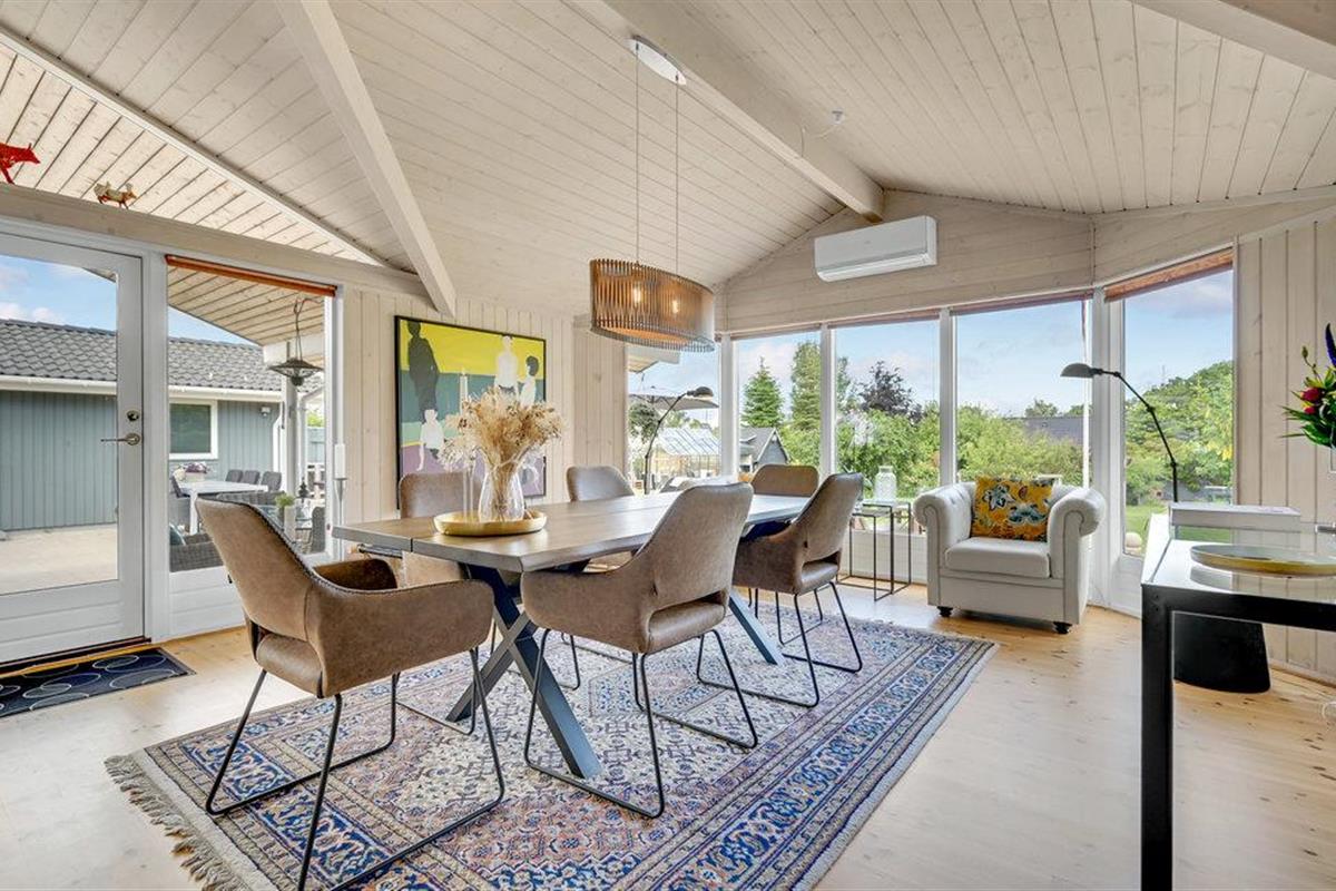 Trakteer jezelf op een welverdiende pauze van de drukte van alledag in de buurt van Skæring Strand. Binnen word je begroet door een stijlvolle combinatie van heldere en warme kleuren, hoge plafonds, modern en smaakvol meubilair en een overvloed aan natuurlijk licht dat door de grote ramen naar binnen stroomt. Dit alles geeft je een gevoel van lichtheid, ruimte, rust en harmonie. In de goed uitgeruste keuken kun je uitkijken naar spannende kookervaringen met je kinderen, en de eettafel is de ideale plek voor een gezellig samenzijn met bord- of kaartspellen.