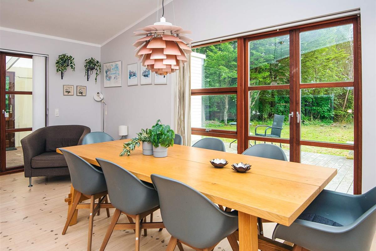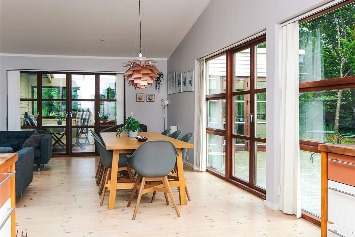 Ferienhaus auf einem eher abgelegenen Naturgrundstück unweit der Küste bei Skødshoved. Das Feriendomizil bietet insgesamt vier Schlafzimmer, zwei Badezimmer sowie einen offenen Küchen-/Wohnbereich für das Familienleben. Von hier hat man Zugang zu einer großen, zum großen Teil überdachten Holzterrasse.