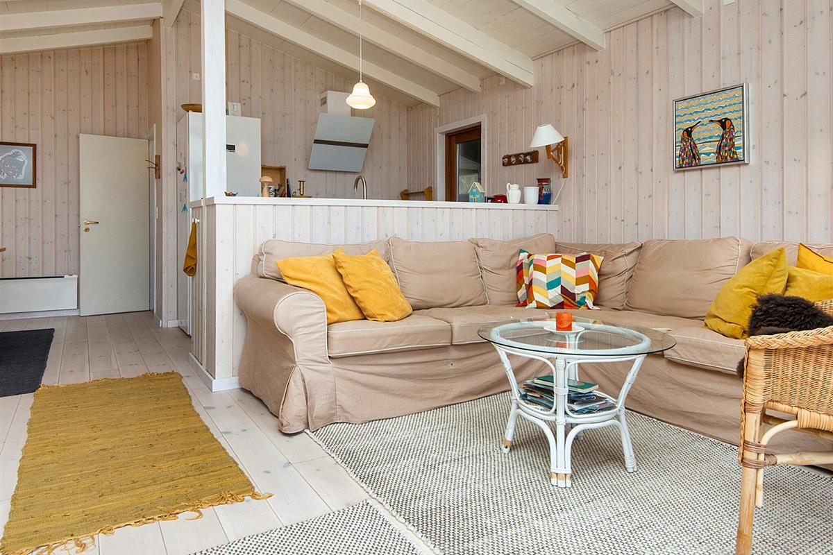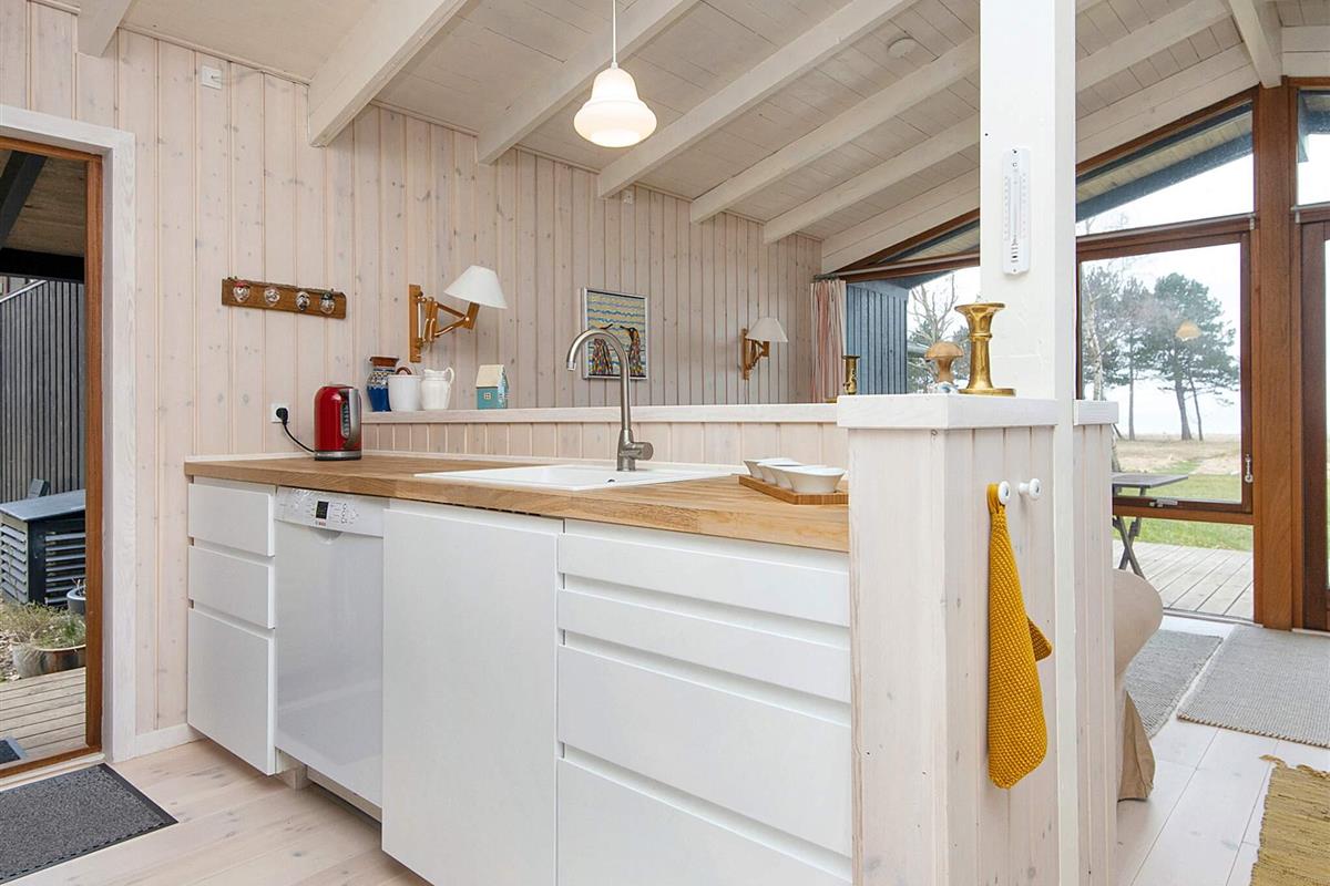 Die Ostsee beginnt dort, wo der Rasen endet. Wenn das Wetter einen Aufenthalt im Freien nicht gestattet, kann man den schönen Ausblick auf vom Inneren des Hauses genießen. Dort gibt es u.a. einen offenen Küchen-/Wohnbereich für das Familienleben.