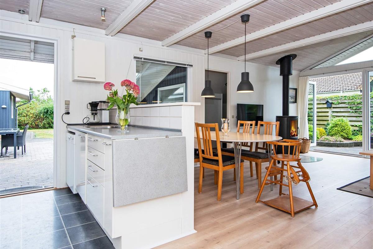 Das Grundstück ist teils abgeschirmt und schön bewachsen. Insgesamt ist hier viel Platz für eine Familie z.B. mit Teenagern oder mitreisenden Großeltern. Das nächste Strandufer liegt nur 238 m entfernt. Der kleine Ort Skødshovedhavn ist zu Fuß erreichbar. Es gibt zudem diverse Wanderwege in der reizvollen Umgebung.