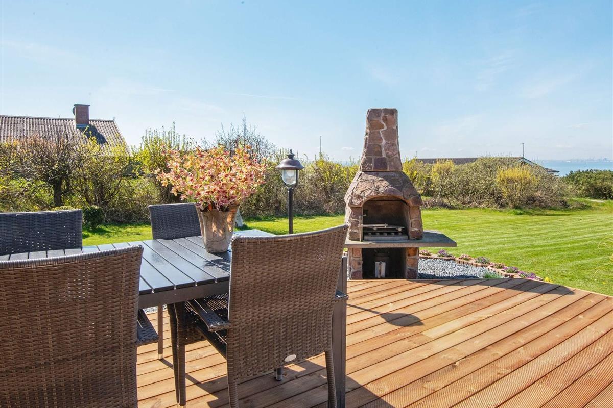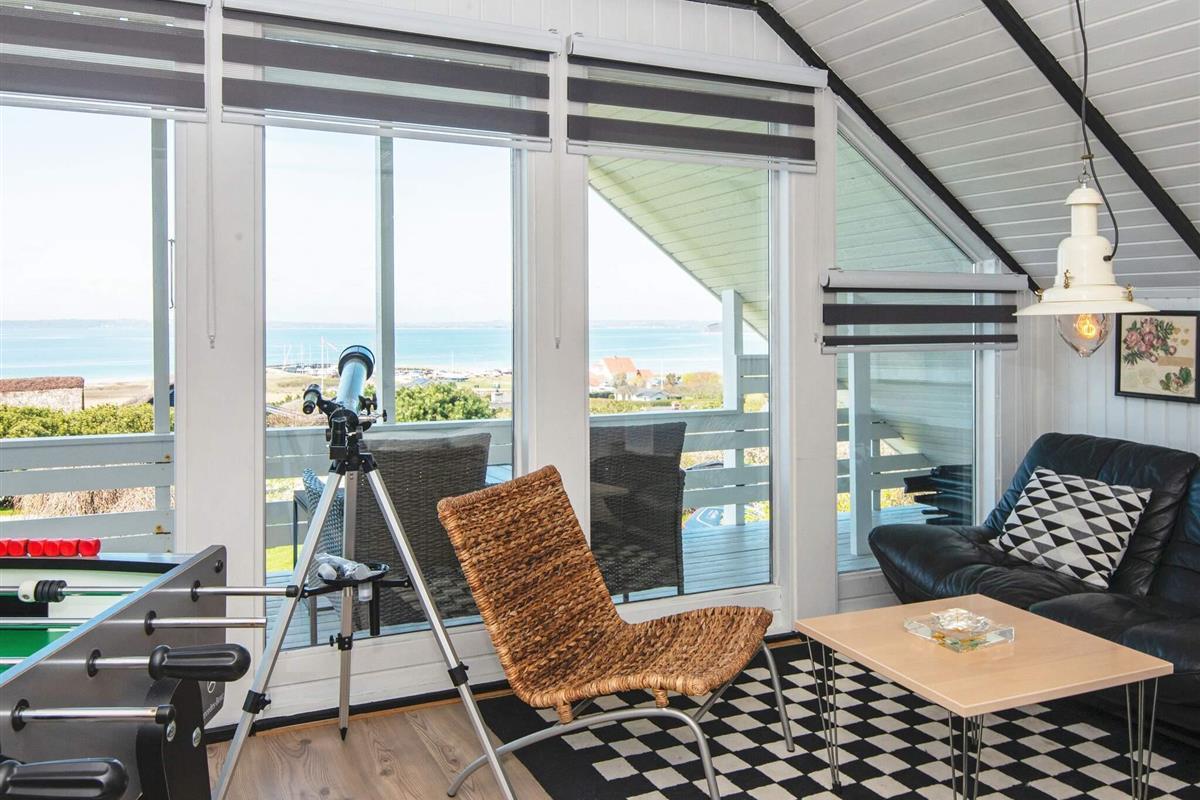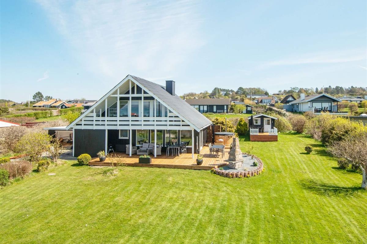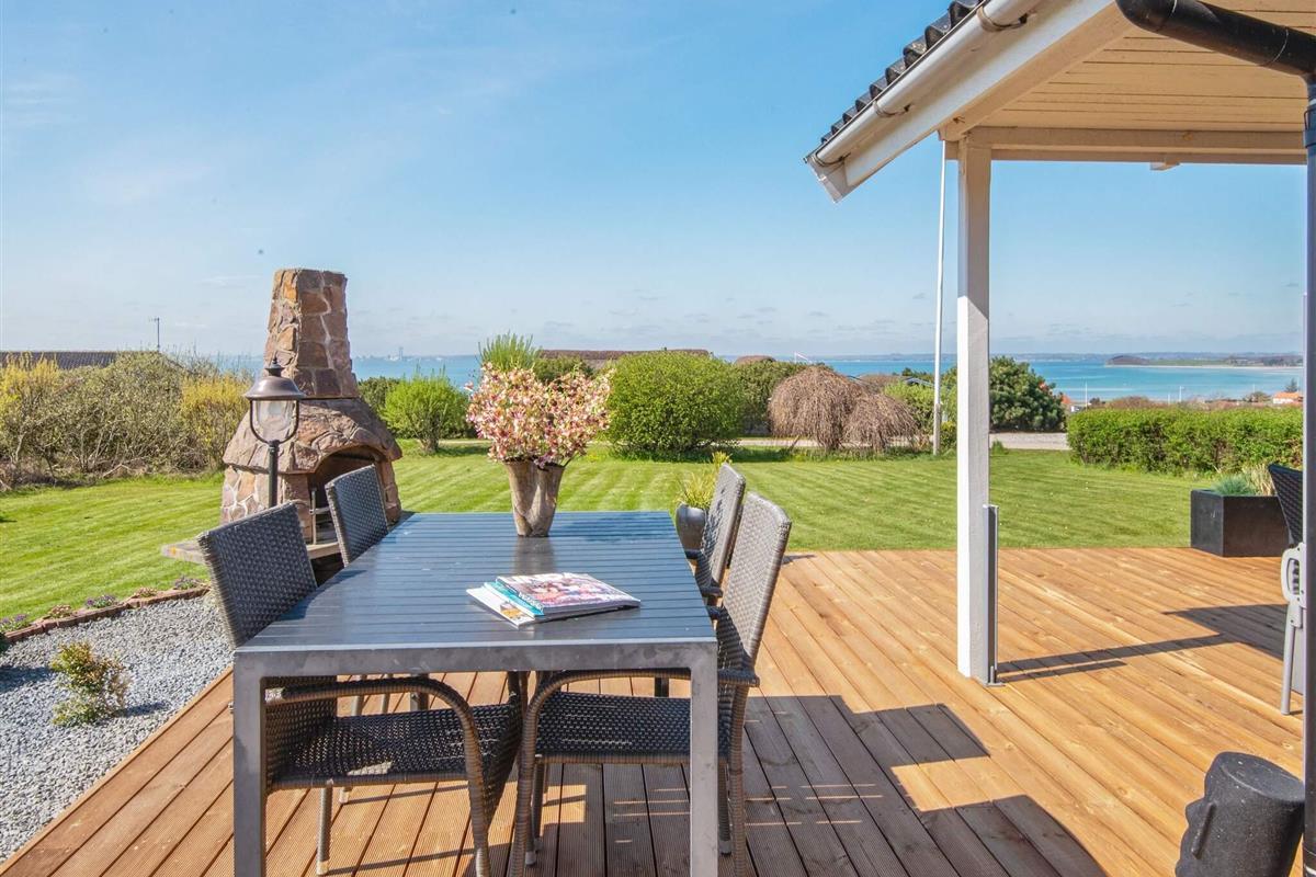 Erhöht gelegenes Ferienhaus mit Whirlpool im Innen- sowie im Außenbereich und Infrarot-Sauna auf der neueren Terrassenfläche, die zudem herrliche Panoramaaussicht zur Bucht von Aarhus bietet!