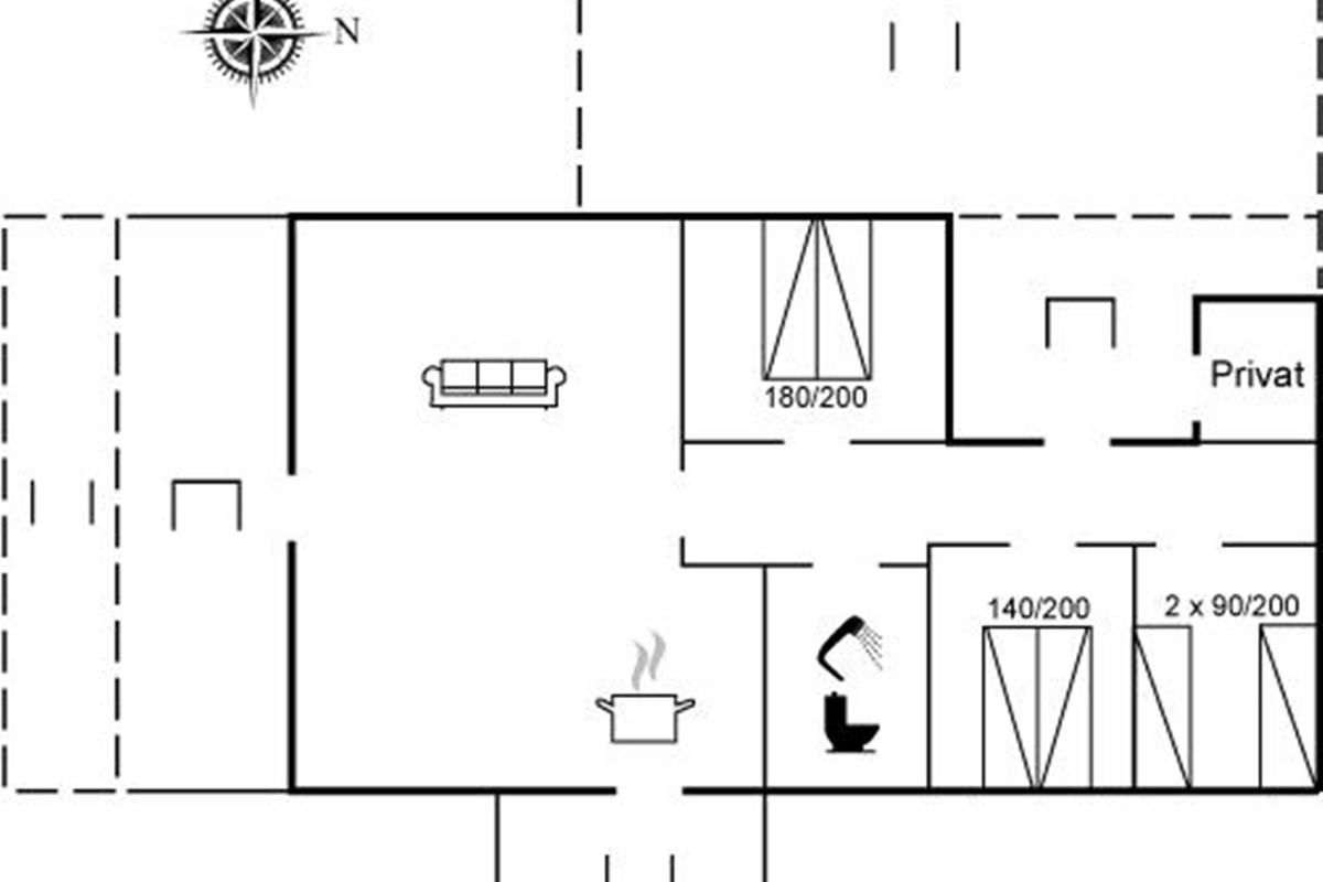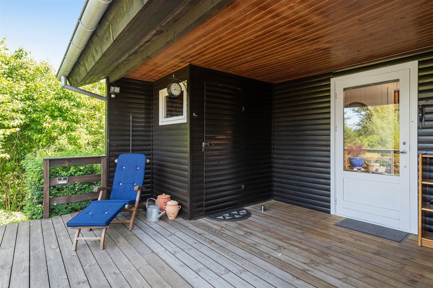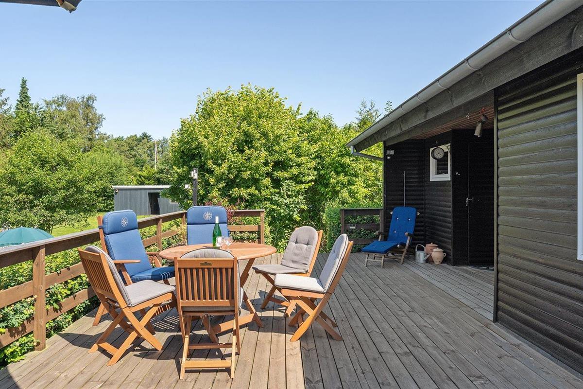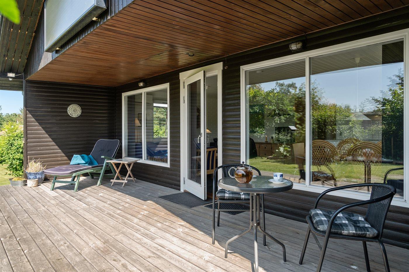 De vakantiewoning is gelegen op een 1252 m² groot aangelegde tuin. De grond is omheind. Afstand tot de zee 900 m. Dichtstbijzijnde winkel 5000 m. Bij de vakantiewoning hoort 32 m² terras. Daarnaast is er een 26 m² groot overdekt terras. Zandbak.Vuurplaats. Barbecue. Parkeerplaats bij het huis.