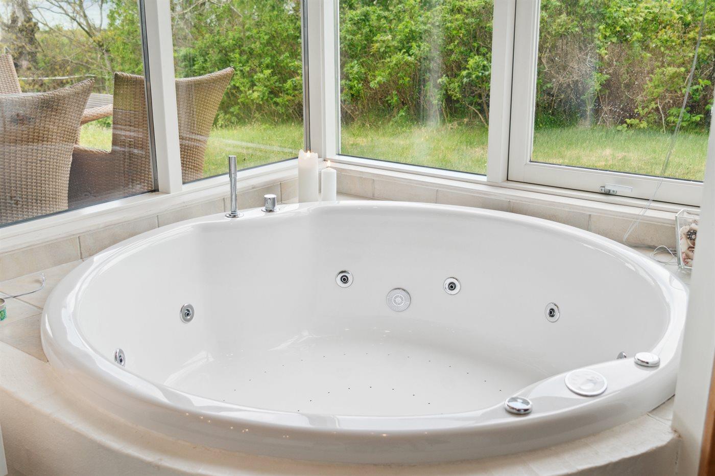 Het binnenbubbelbad (vulwater) biedt ontspanning aan 4 personen.