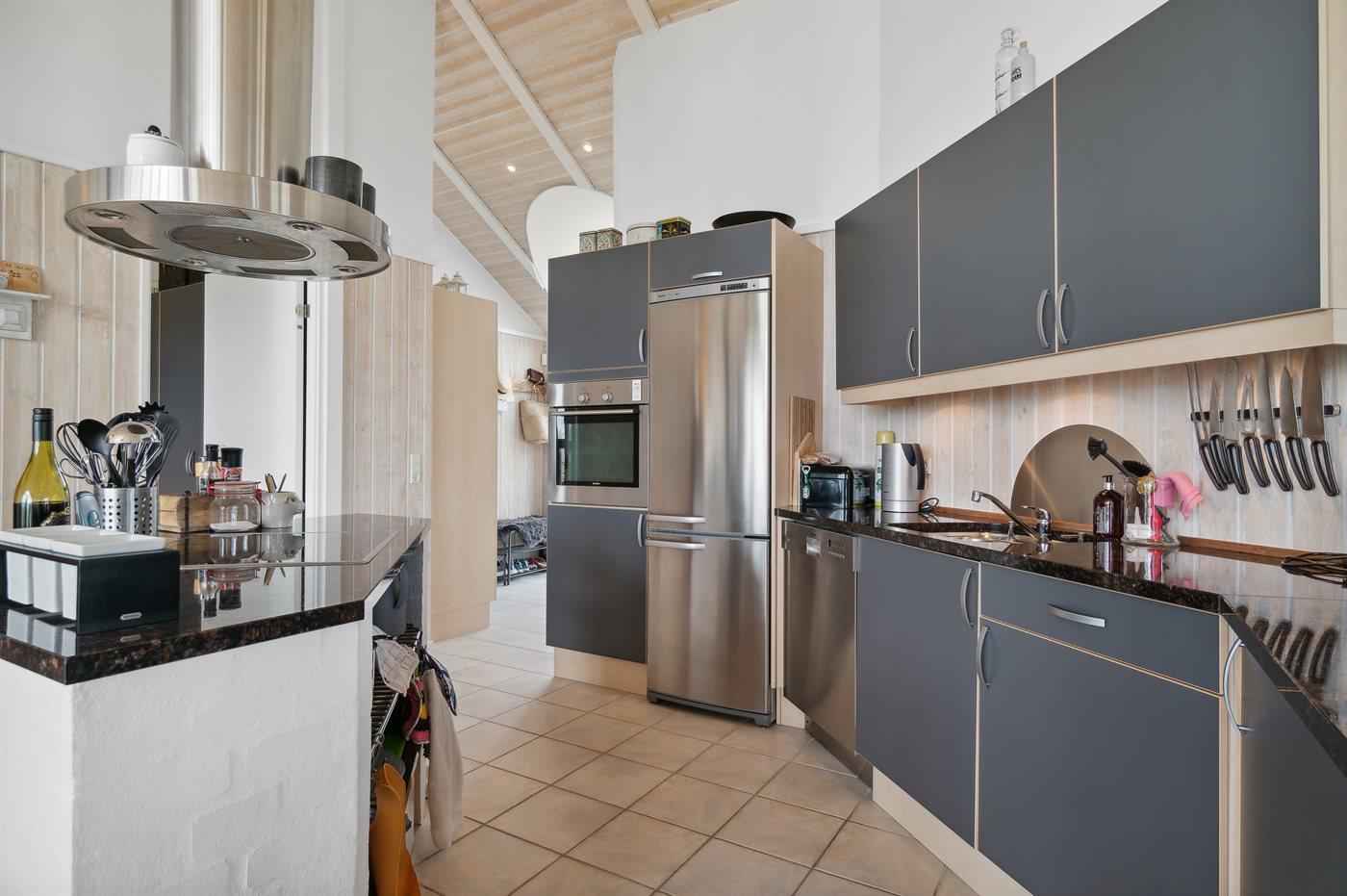 De keuken is uitgerust met koelkast Er is 4 inductiekookplaten, heteluchtoven, magnetron en vaatwasser.