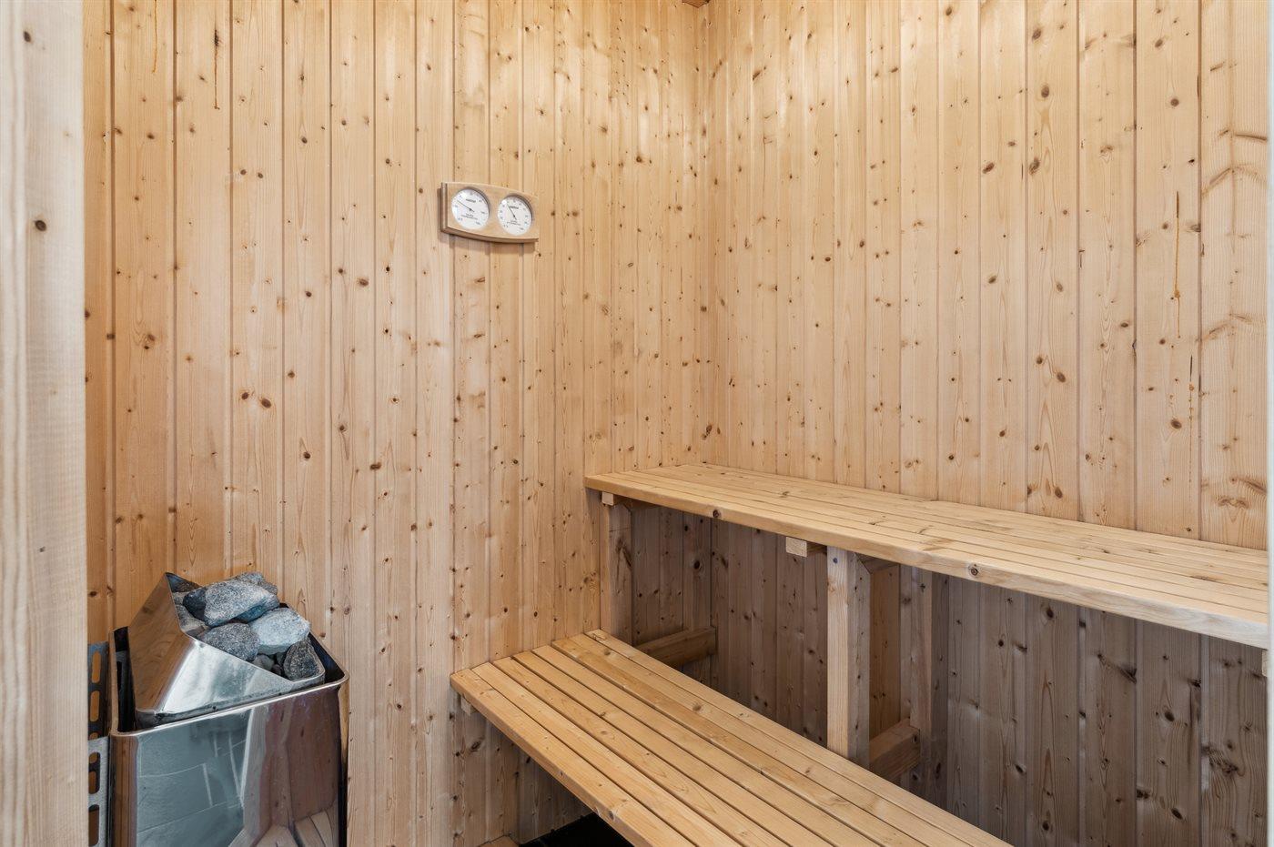 Er is 2 badkamers met douchehok en 2 toiletten. Er is vloerverwarming in 2 van de badkamers. De sauna biedt de gelegenheid tot ontspanning.