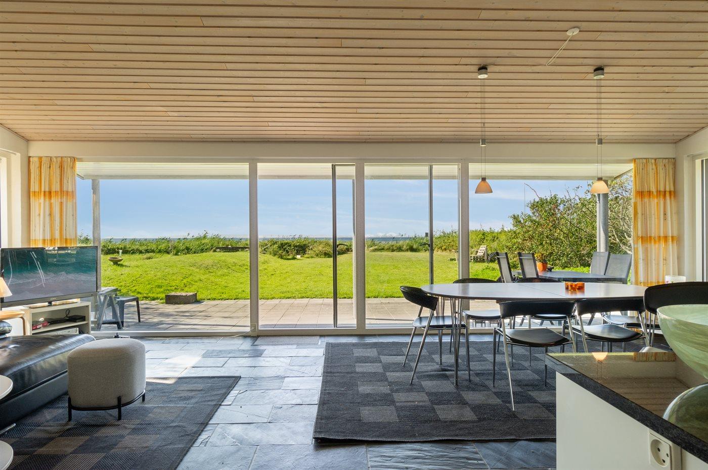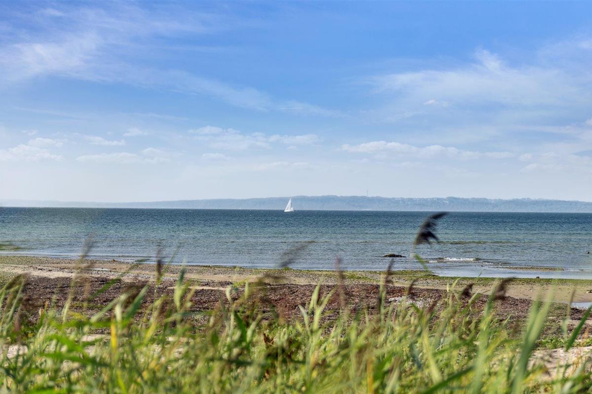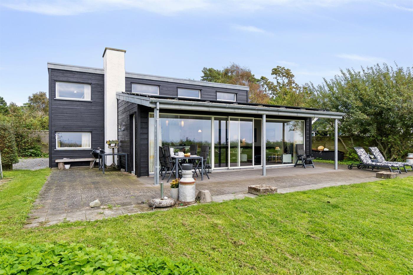 Comfortabel vakantiehuis in Knebel met zeezicht, sauna en bubbelbad, vlak bij het strand.