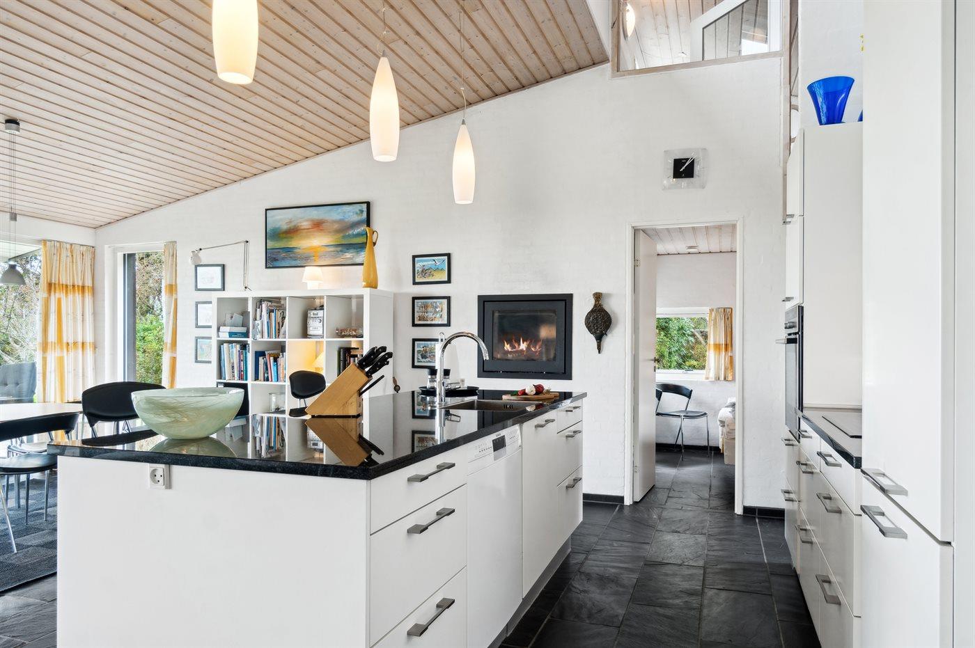 De keuken is uitgerust met koelkast Er is 4 inductiekookplaten, heteluchtoven, magnetron en vaatwasser.