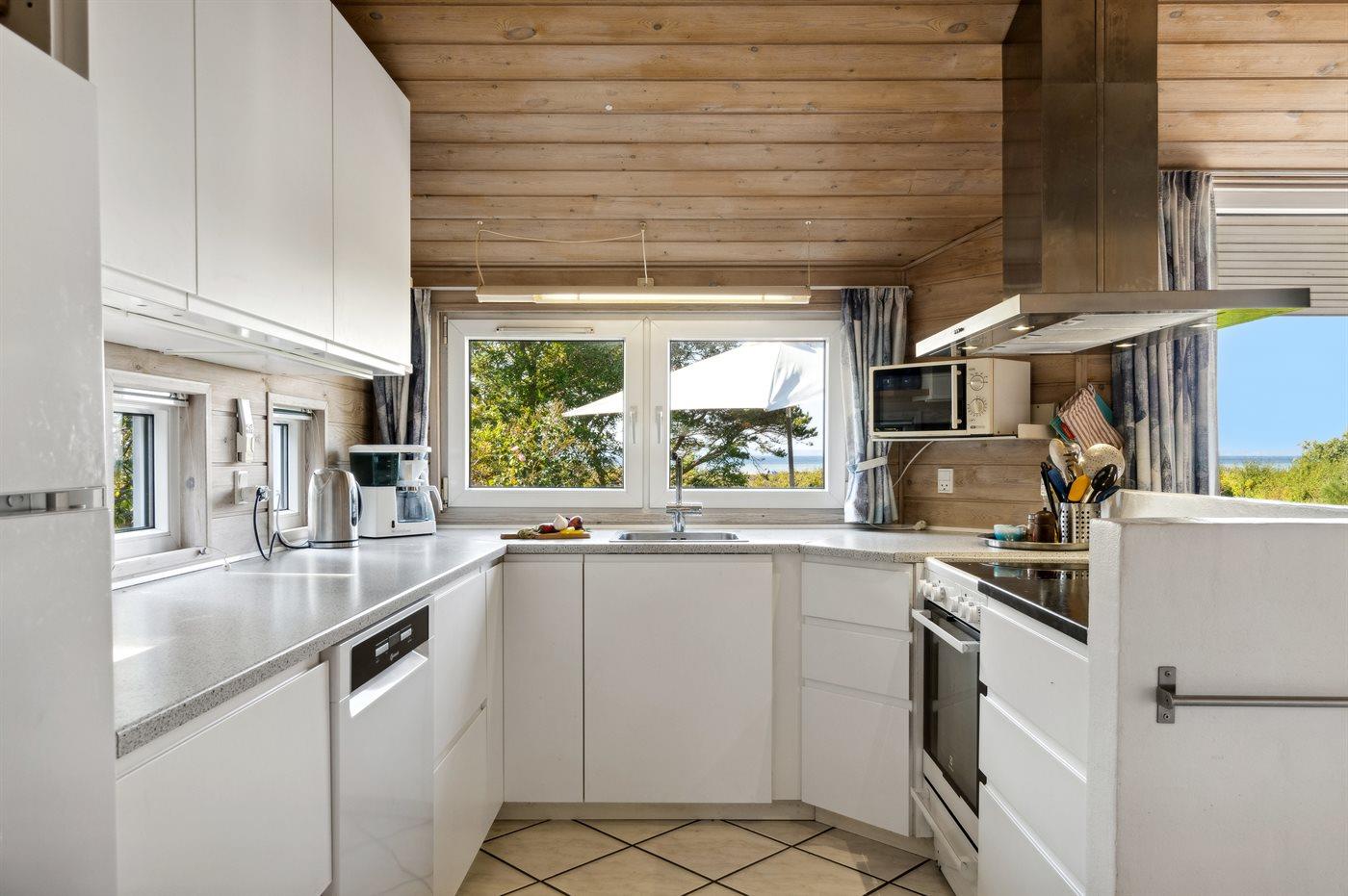 De keuken is uitgerust met koelkast Er is 4 inductiekookplaten, heteluchtoven, magnetron en vaatwasser.