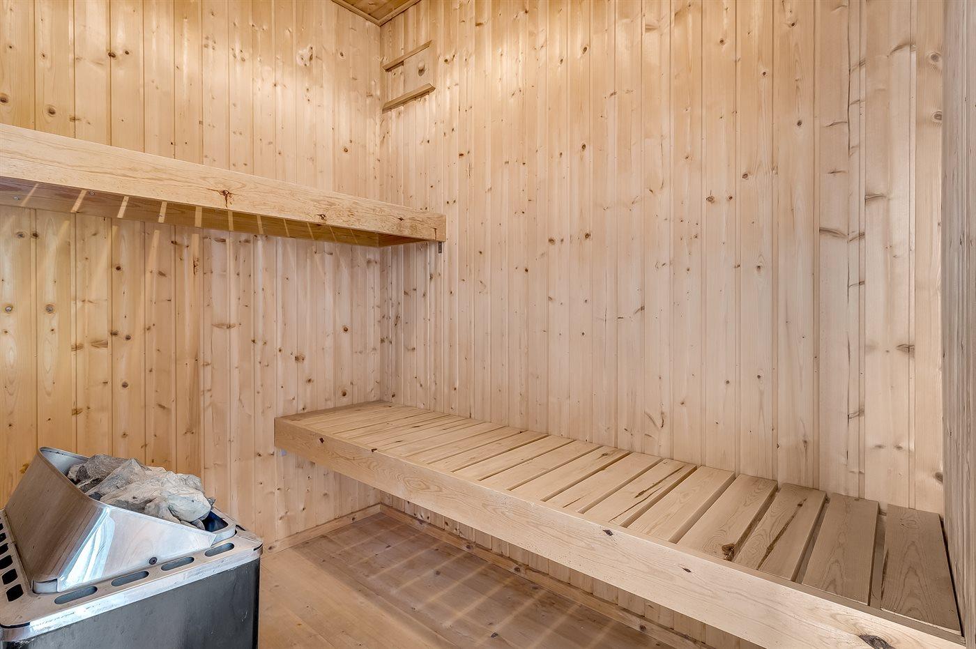 Er is 2 badkamers met douchehok en 1 toilet.. Er is vloerverwarming in 1 badkamer. De sauna biedt de gelegenheid tot ontspanning.