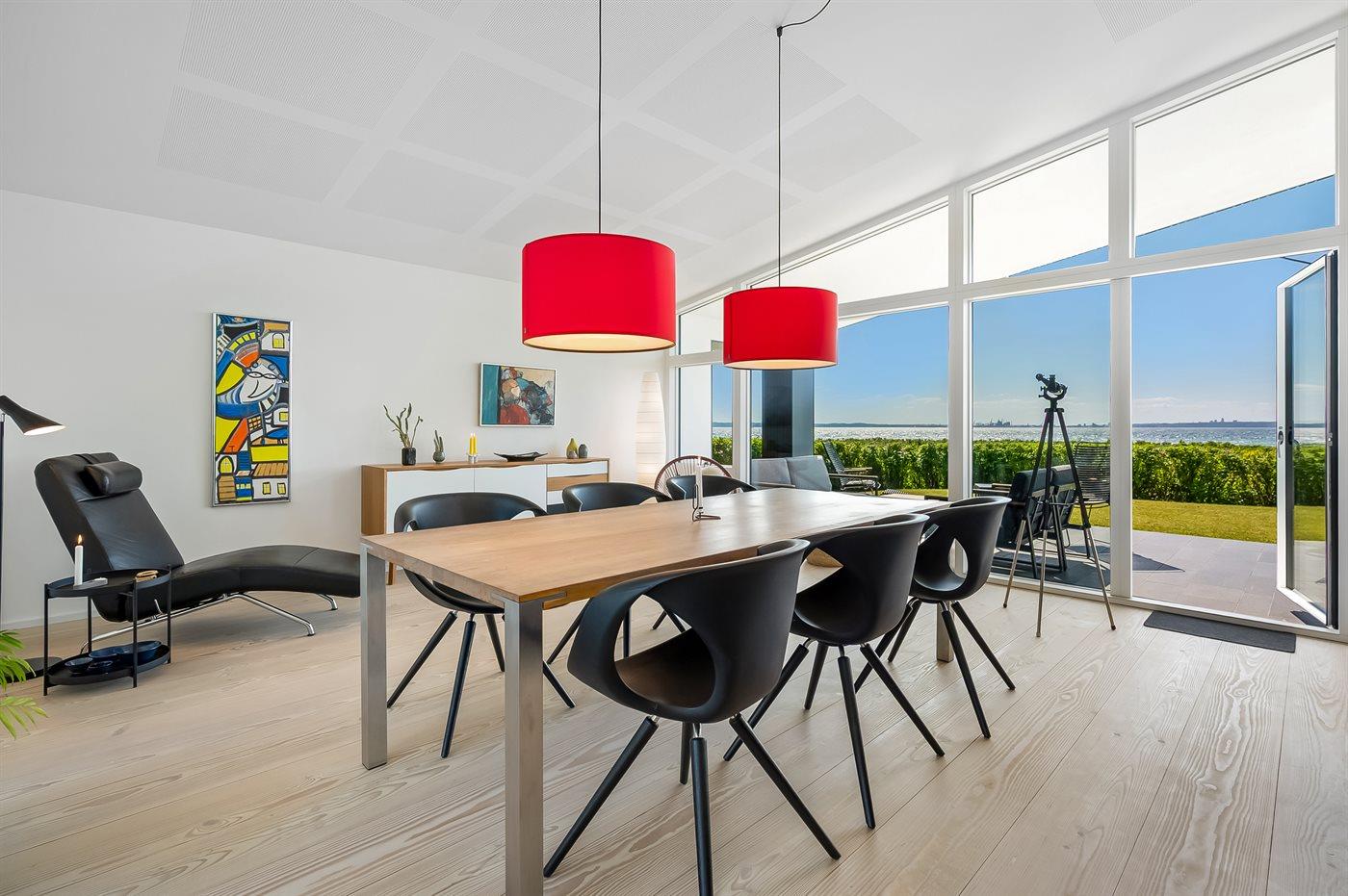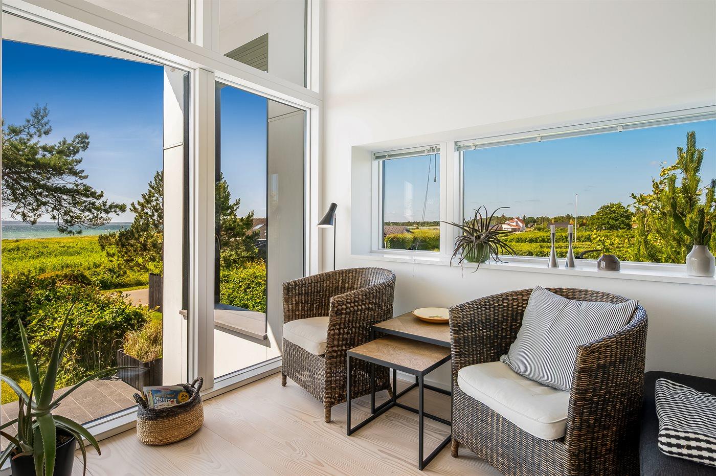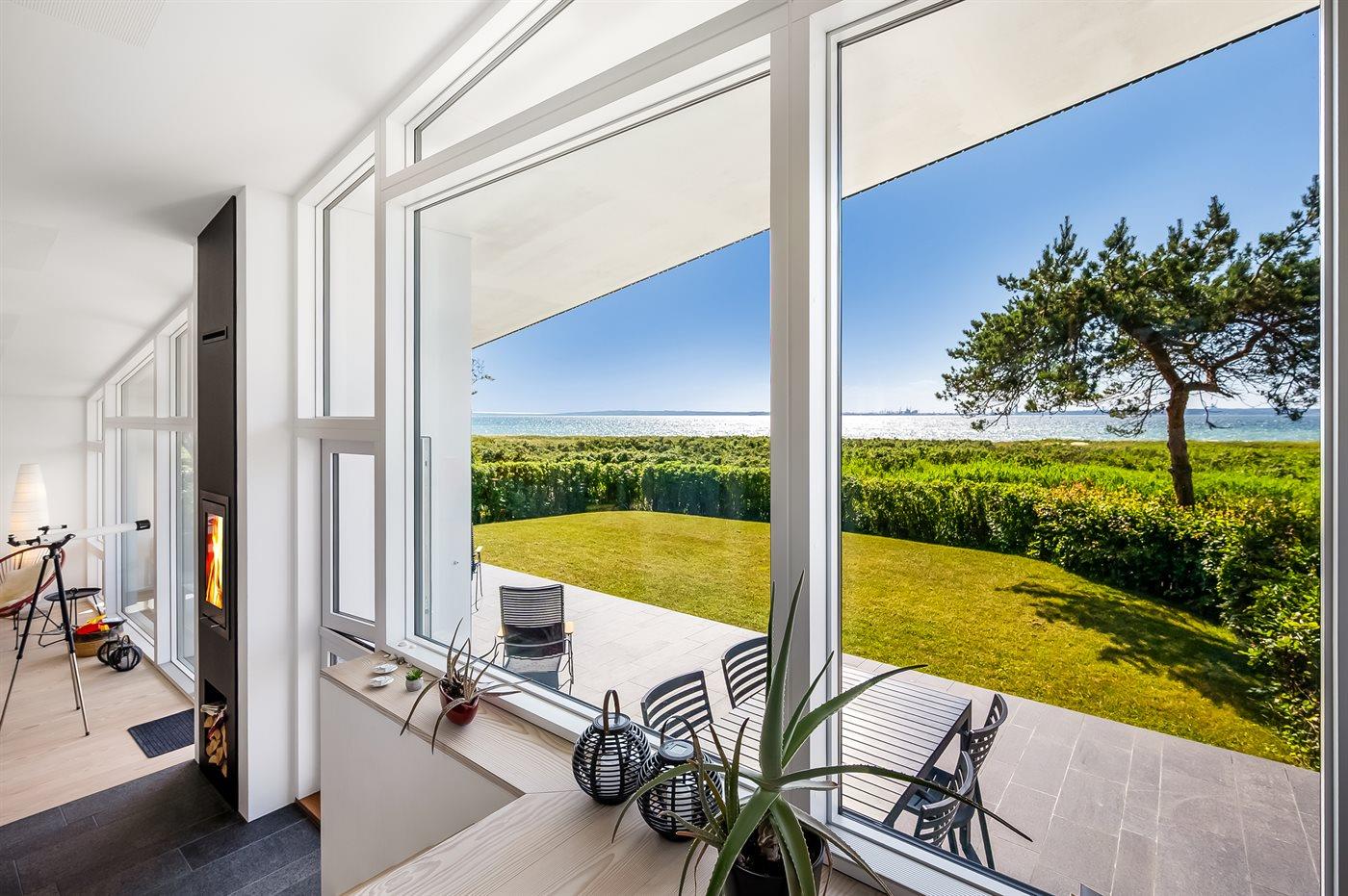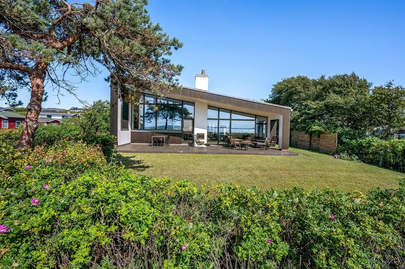 Modern vakantiehuis in Knebel met zeezicht, tuin, activiteitenruimte en vloerverwarming voor een ontspannen verblijf.