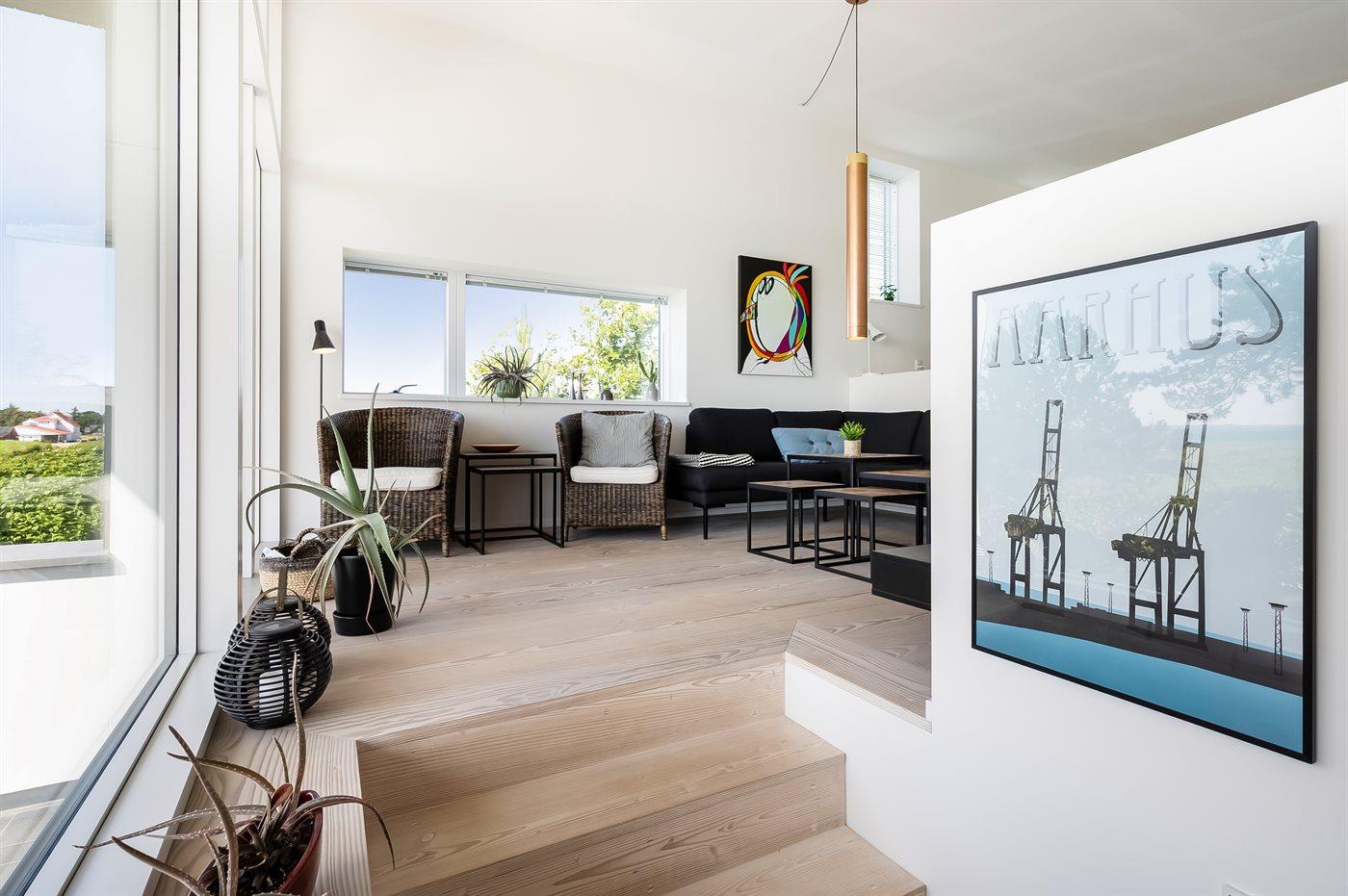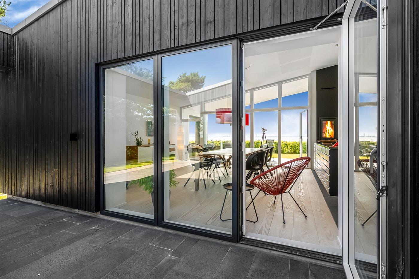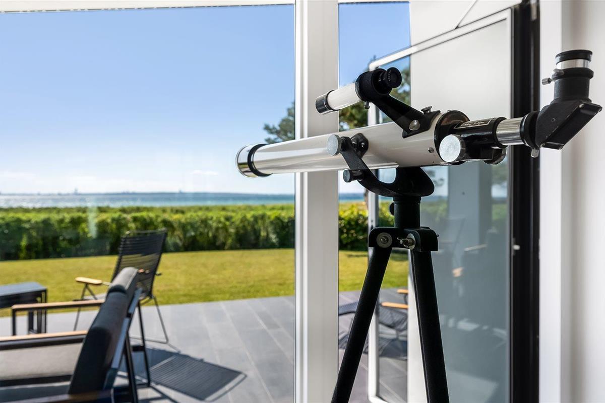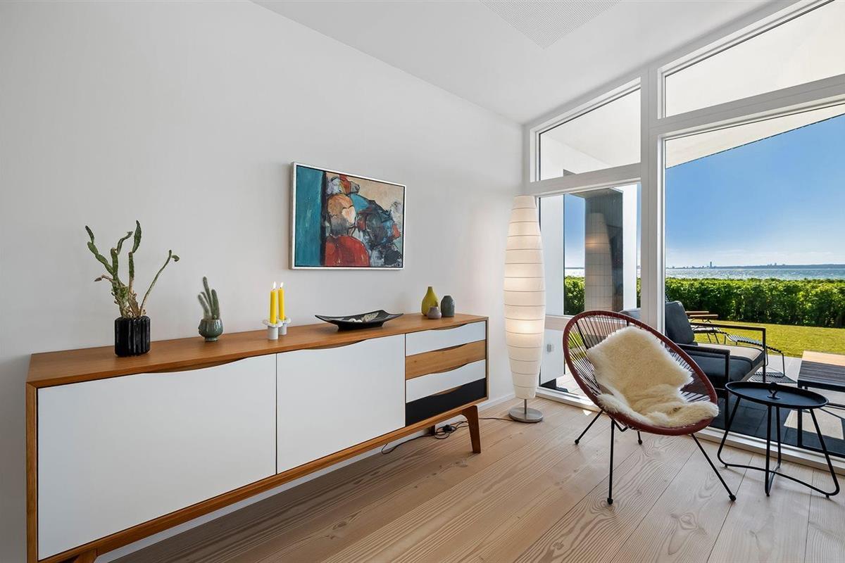 Modern vakantiehuis in Knebel met zeezicht, tuin, activiteitenruimte en vloerverwarming voor een ontspannen verblijf.