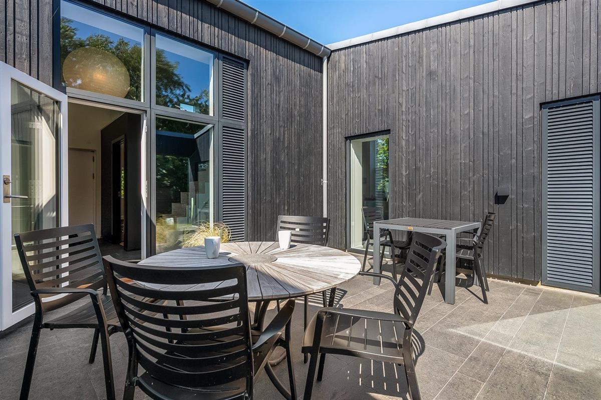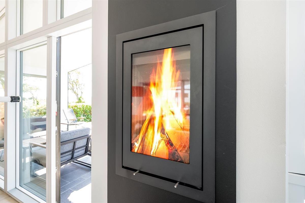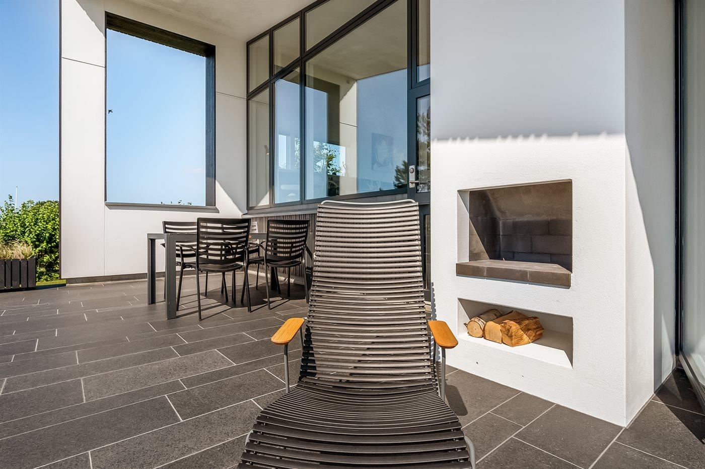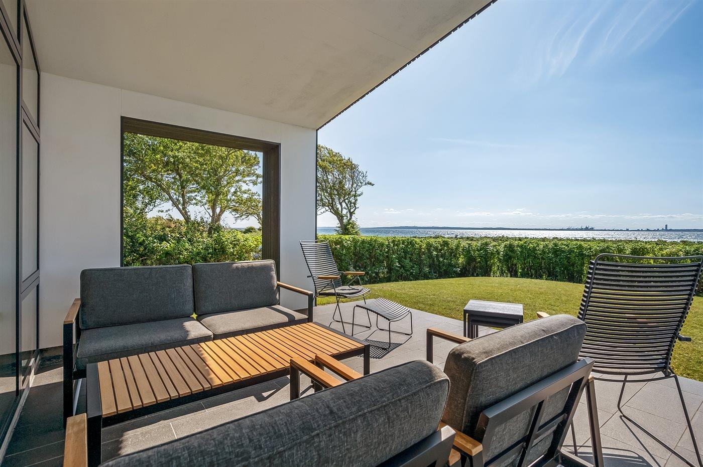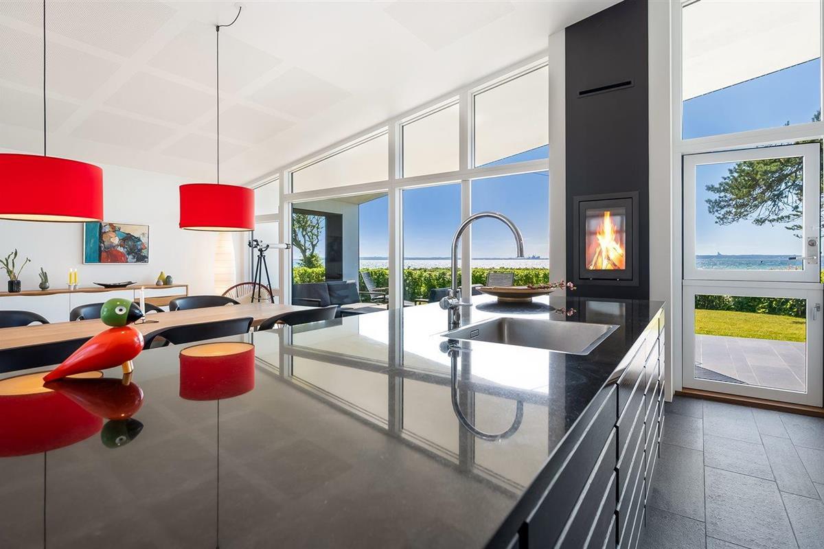 Modern vakantiehuis in Knebel met zeezicht, tuin, activiteitenruimte en vloerverwarming voor een ontspannen verblijf.