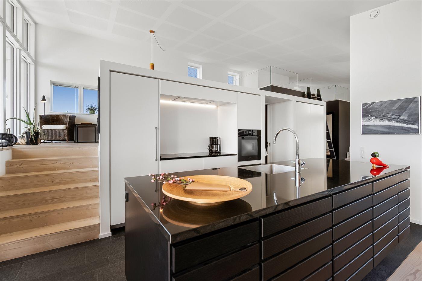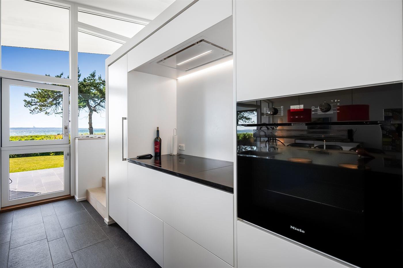 De keuken is uitgerust met koelkast Er is 4 inductiekookplaten, heteluchtoven, magnetron en vaatwasser.