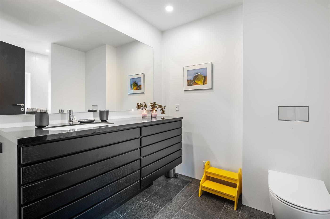 Er is 2 badkamers met douchehok en 2 toiletten. Er is vloerverwarming in 2 van de badkamers.