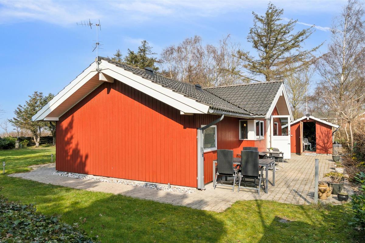 Geniet van een charmant vakantiehuis vlak bij Skødshoved Strand met houtkachel en zonnig terras.