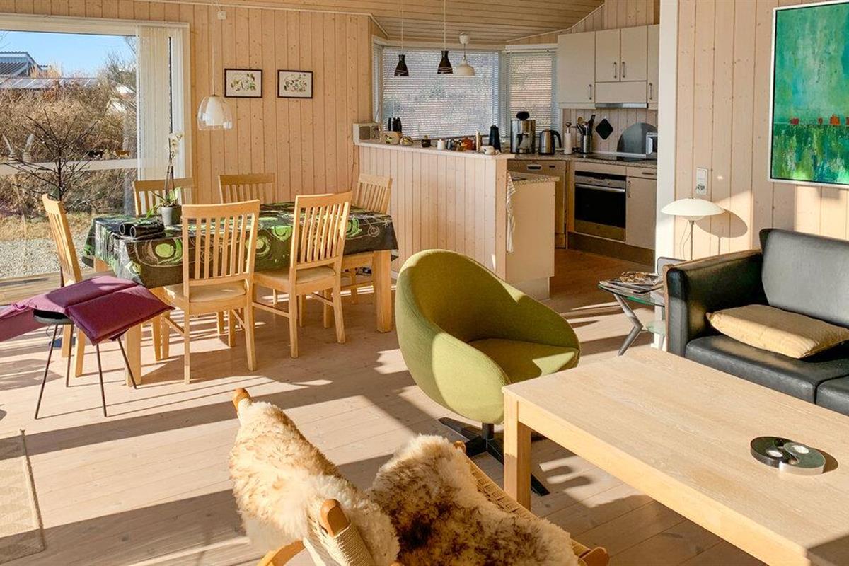 In dit zonovergoten vakantiehuis creëren lichte houten muren en stijlvolle meubels een echte feel-good sfeer. Maak heerlijke gerechten in de gezellige keuken en geniet samen van maaltijden aan de uitnodigende eettafel. Kijk uit naar rustige uurtjes lezen of spannende filmavonden op de comfortabele bank.