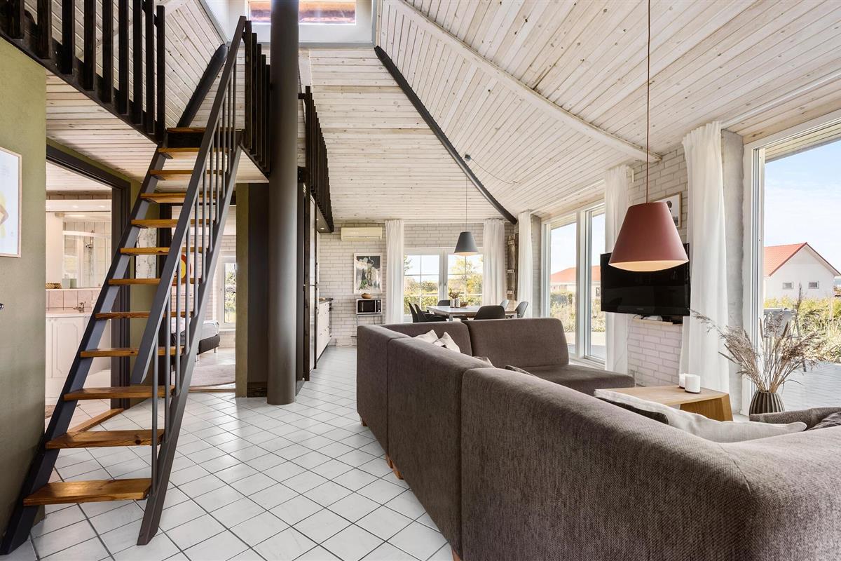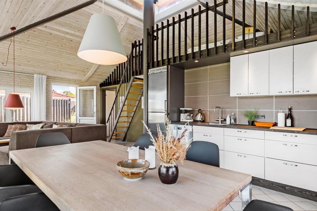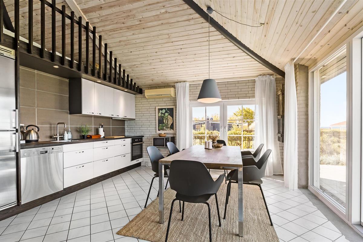 Je vakantiehuis ligt in de directe omgeving van het strand van Skødshoved en biedt de beste voorwaarden voor een ontspannen vakantie in een rustige omgeving. U kunt zich verheugen op een geslaagde mix van klassieke vakantiesfeer en spannende details. Hoge plafonds, lichtgekleurde houten muren en grote ramen zorgen voor een lichte en open sfeer in de woonkamer. Maak het jezelf gemakkelijk op de bank of geniet van het fantastische uitzicht op het groen. De aangrenzende keuken is functioneel uitgerust en geïntegreerd in het woon- en eetgedeelte, ideaal om te socializen en te koken.