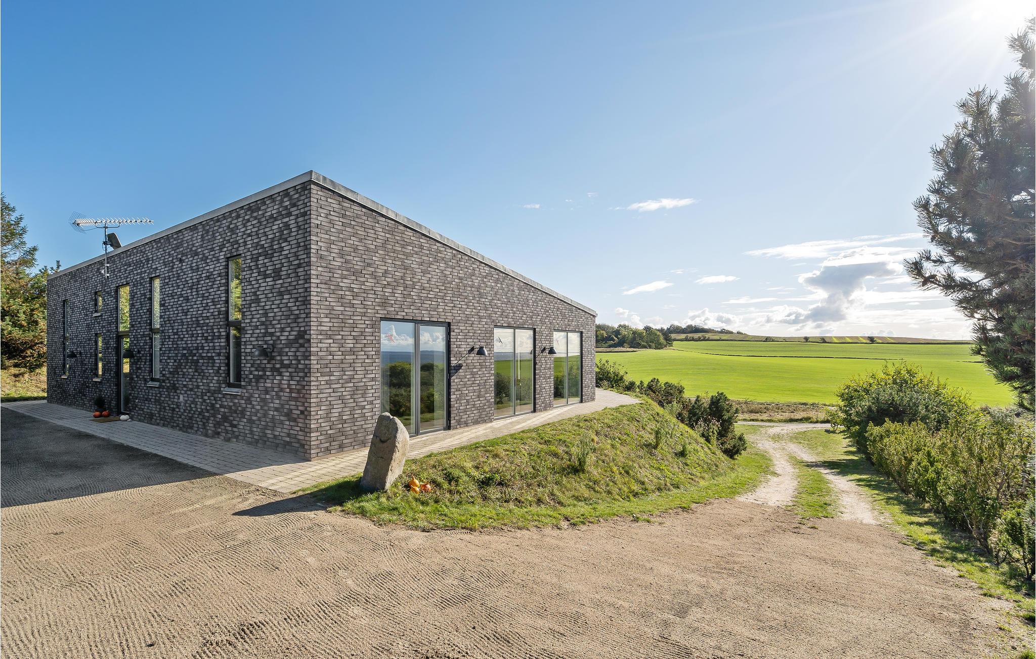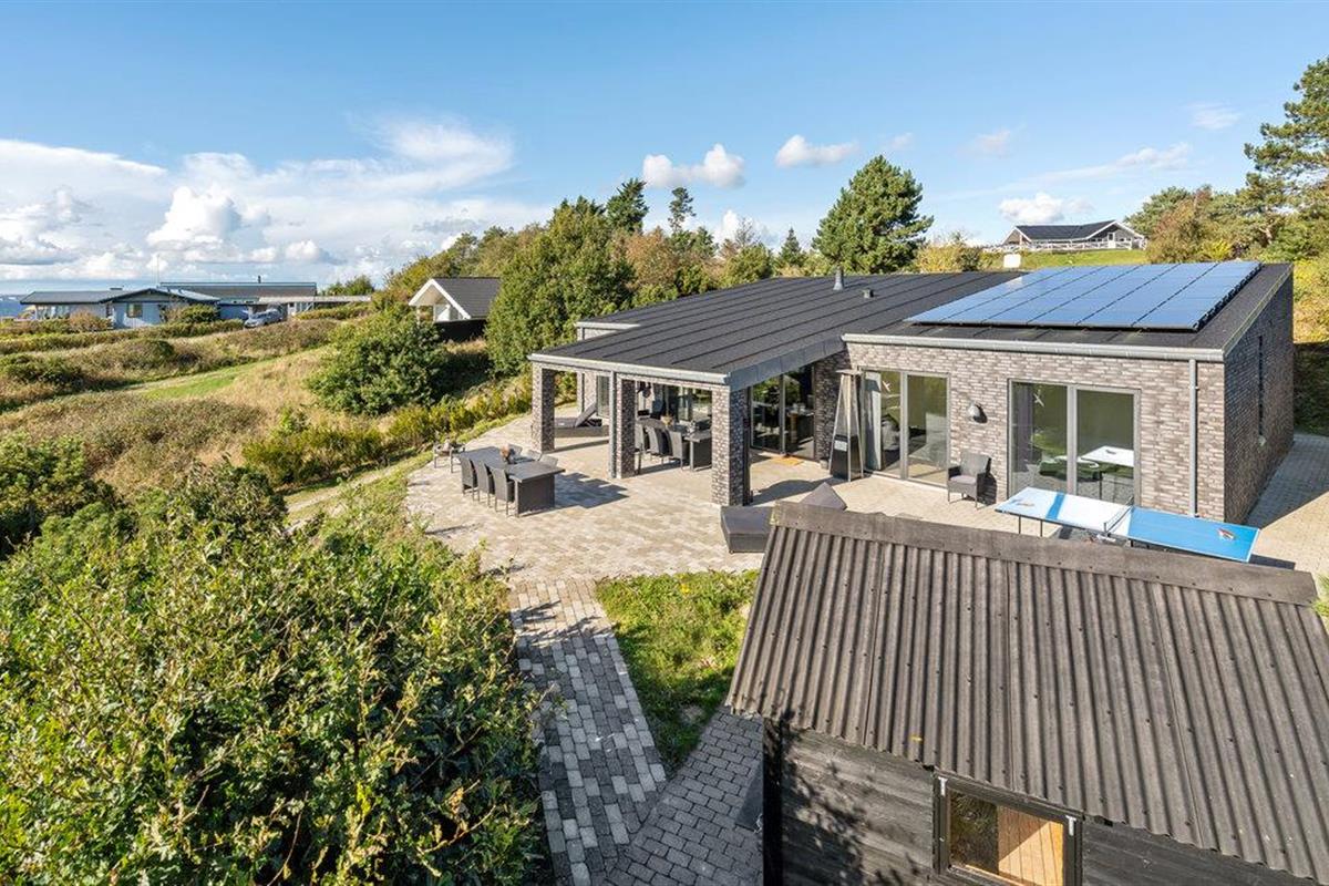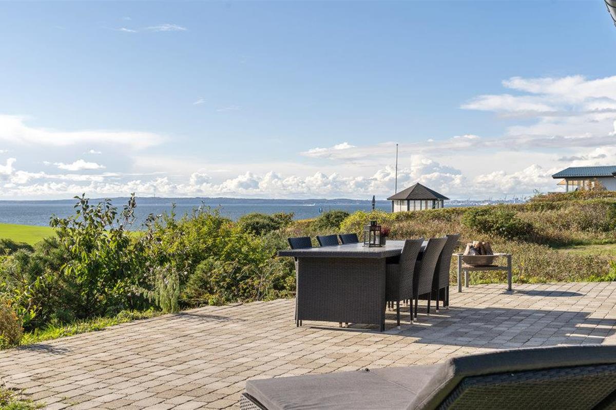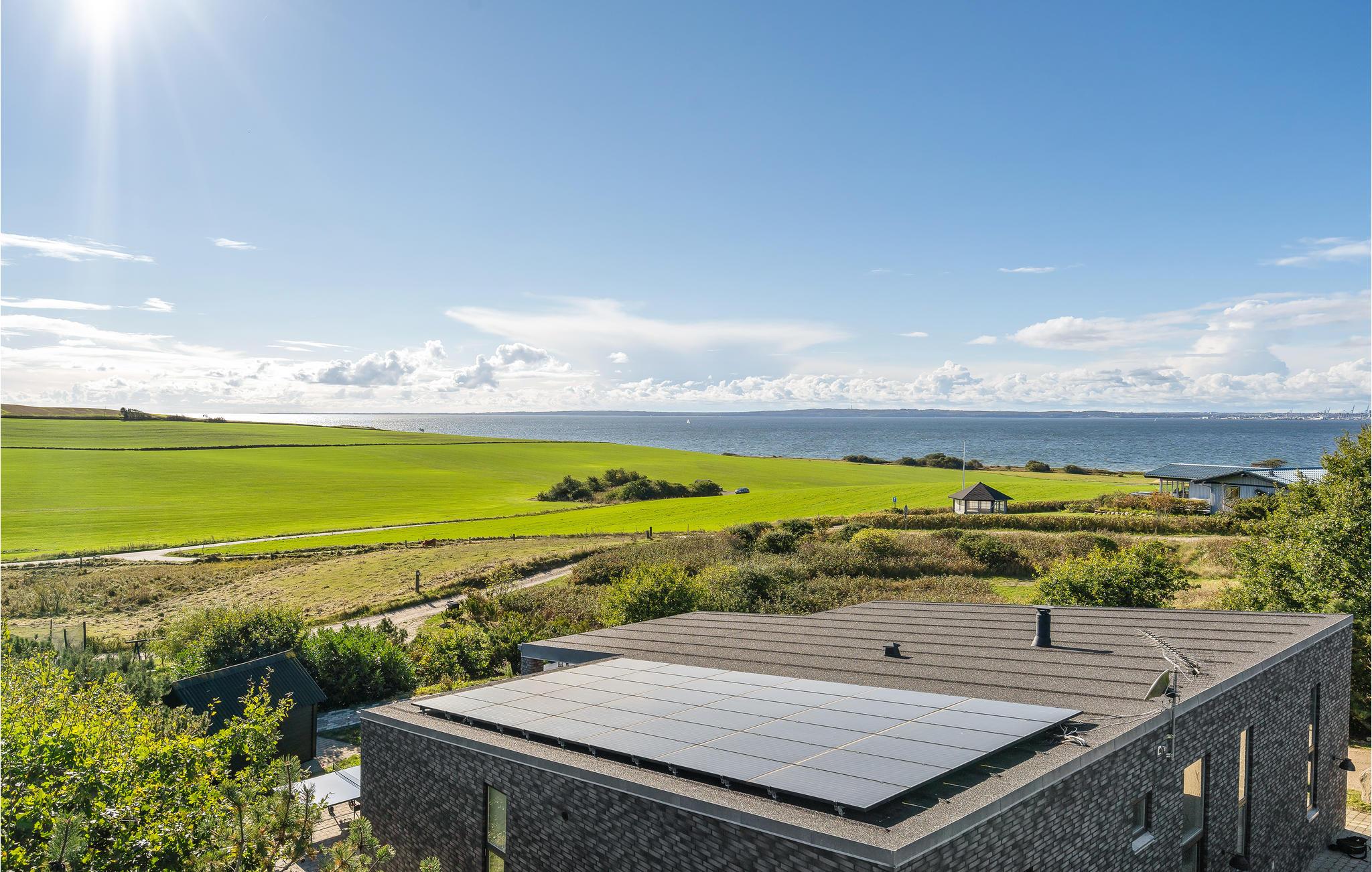 Modern vakantiehuis met panoramisch zeezicht en luxe faciliteiten nabij strand en Aarhus.