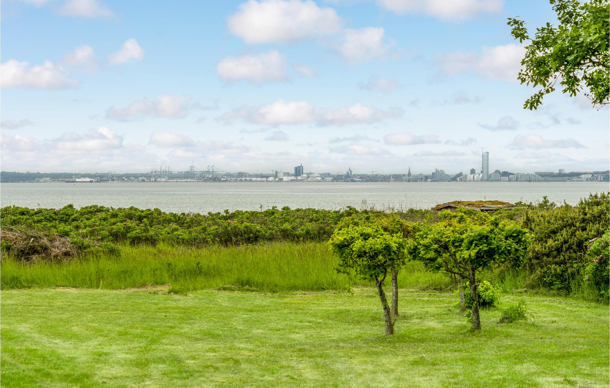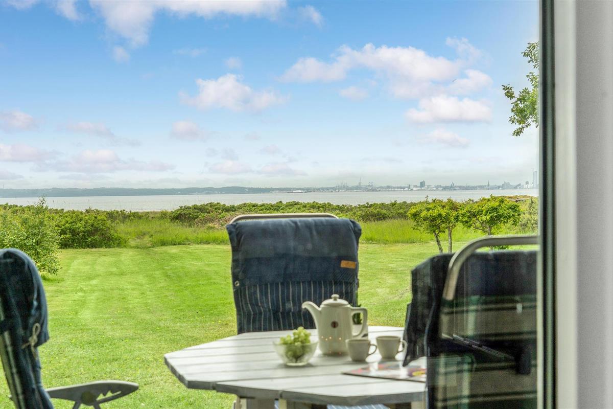 Geniet van een panoramisch uitzicht en directe toegang tot het strand in dit energiezuinige vakantiehuis aan Skødshoved Strand.