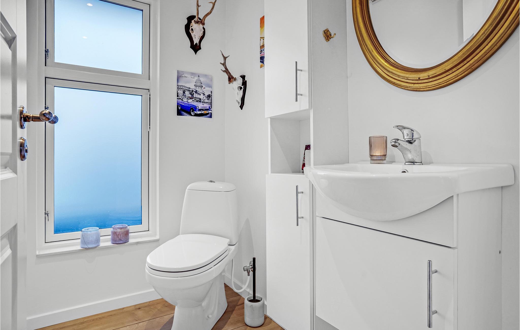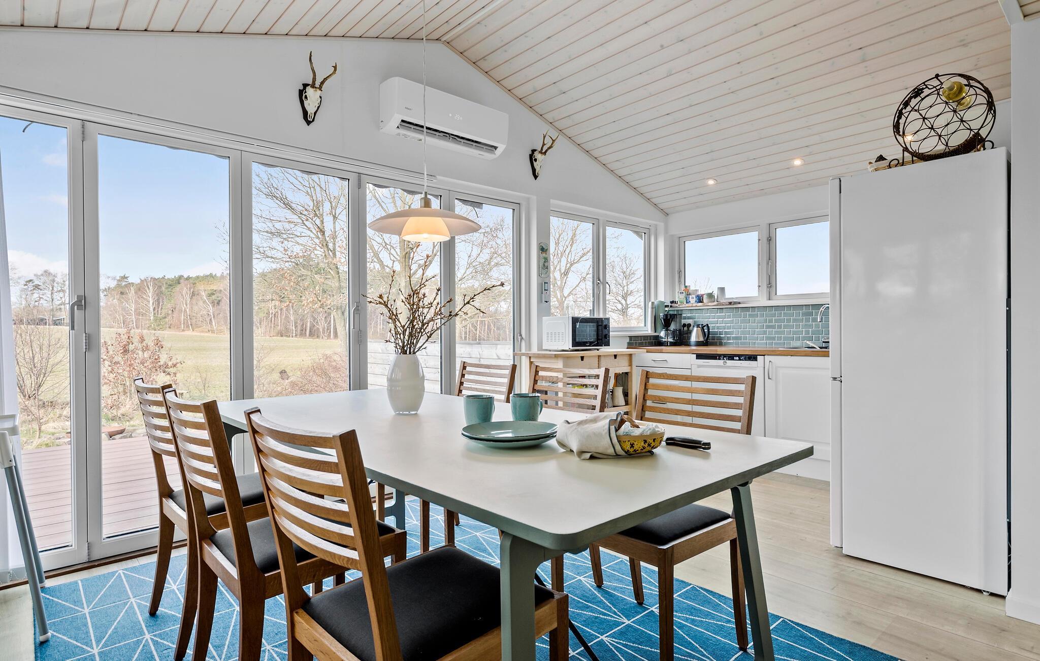 Een gezellig pad leidt naar een prachtig kiezelstrand waar u kunt genieten van de zonsondergang of zelfs, als u geluk heeft, een handbijl uit het stenen tijdperk kunt vinden. Het rustige, privéterrein biedt uitzicht over open velden en de zee. Het huis heeft een prachtig houten terras met zon van zonsopgang tot zonsondergang en een groot gazon om te rennen en te spelen. Het huis met zijn open leefruimte heeft een goed binnenklimaat en nodigt uit tot gezelligheid in de avonden.