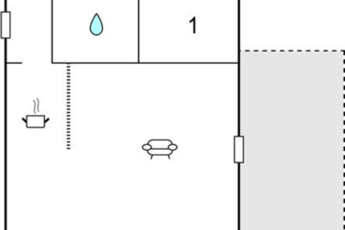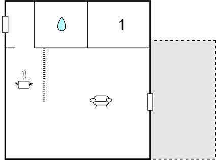Woonkamer met open keuken 26m2 - 2 Slaapplaatsen. (Opklapbed(den) of matras(sen)).