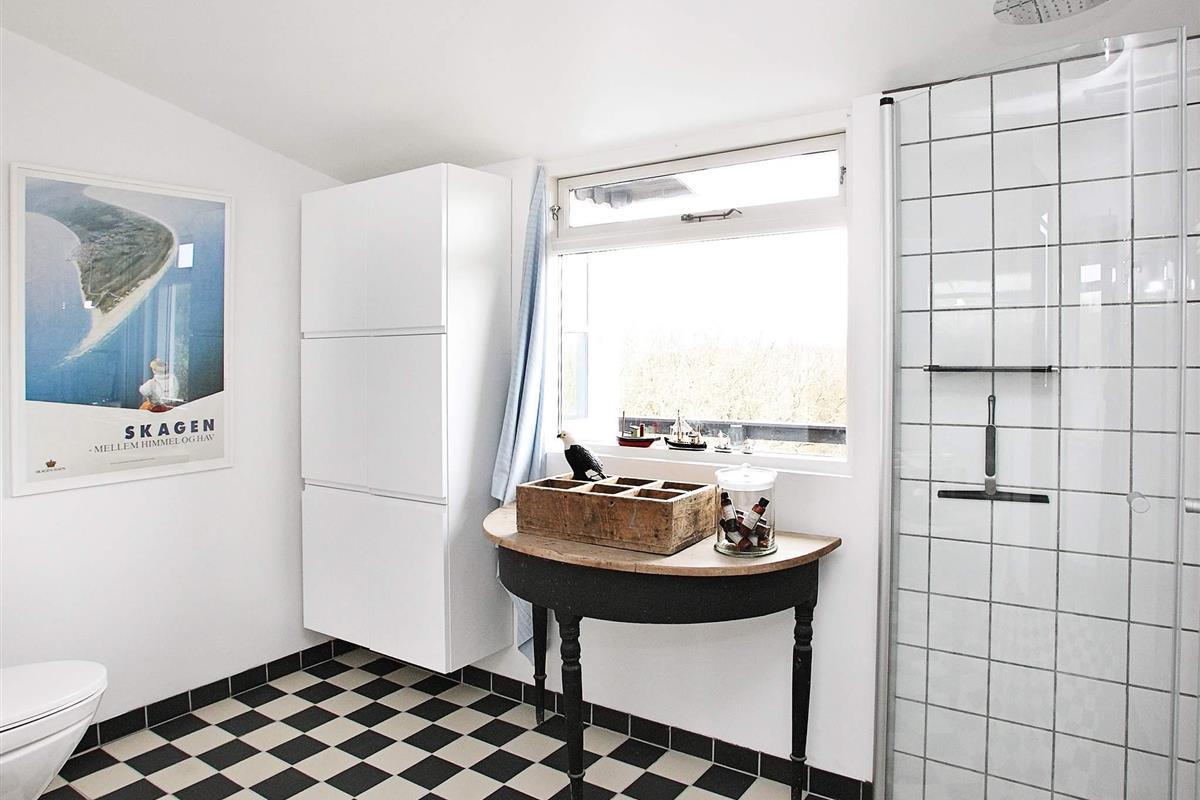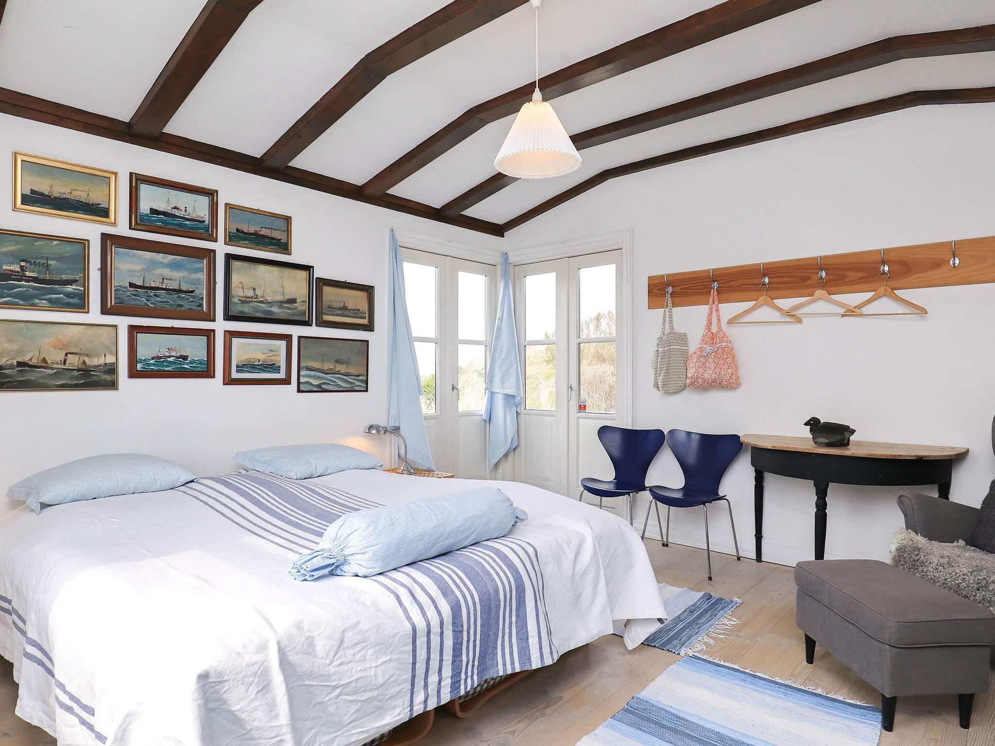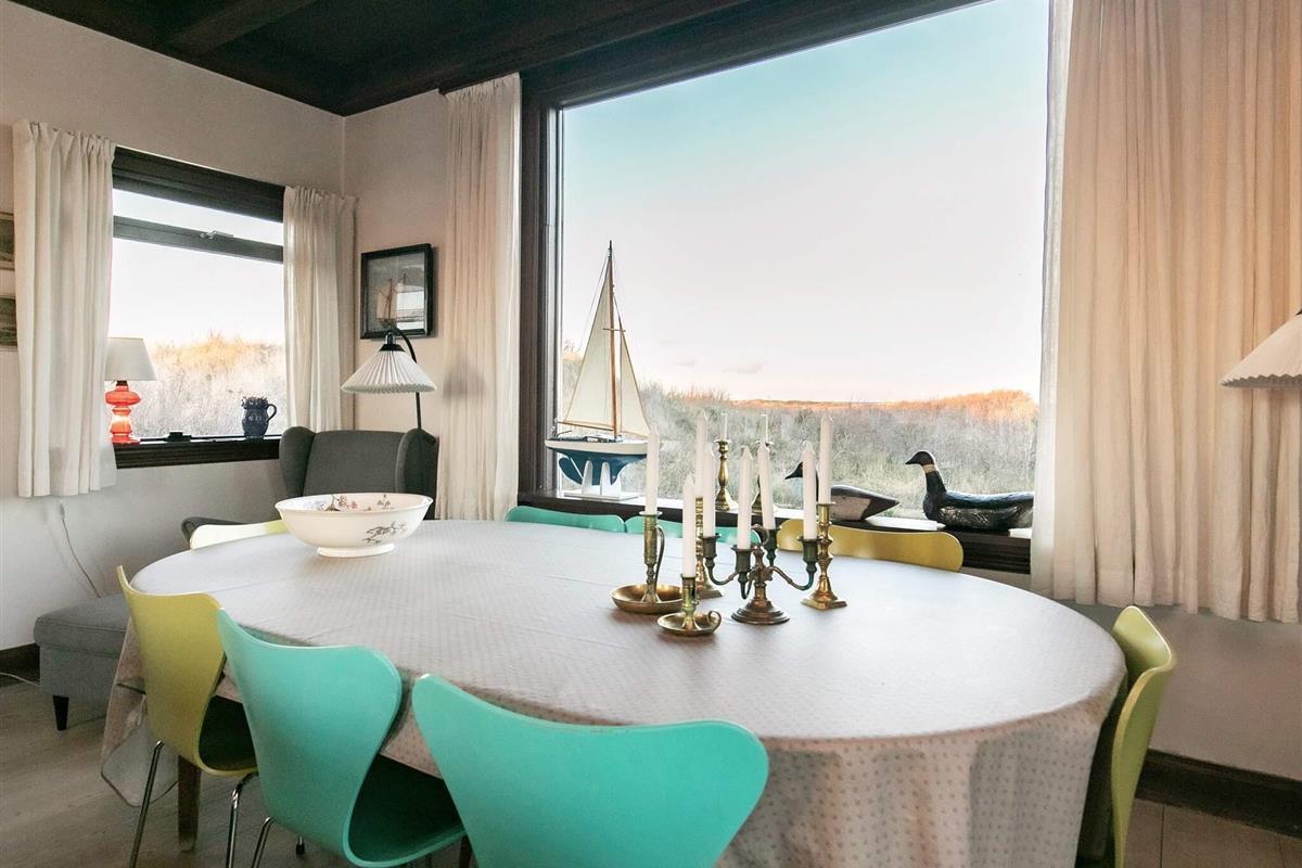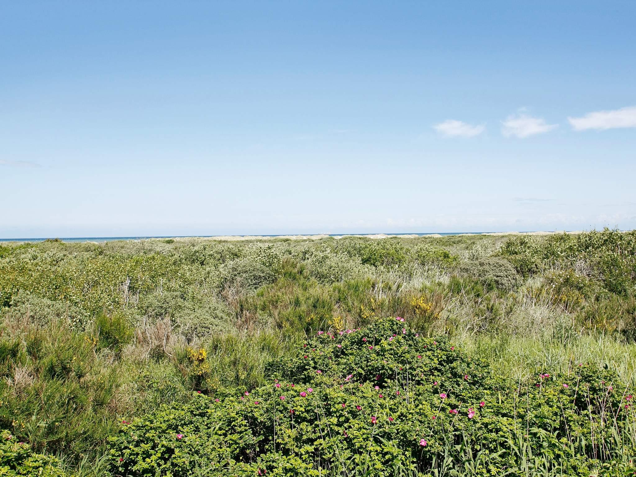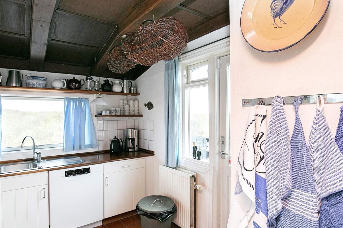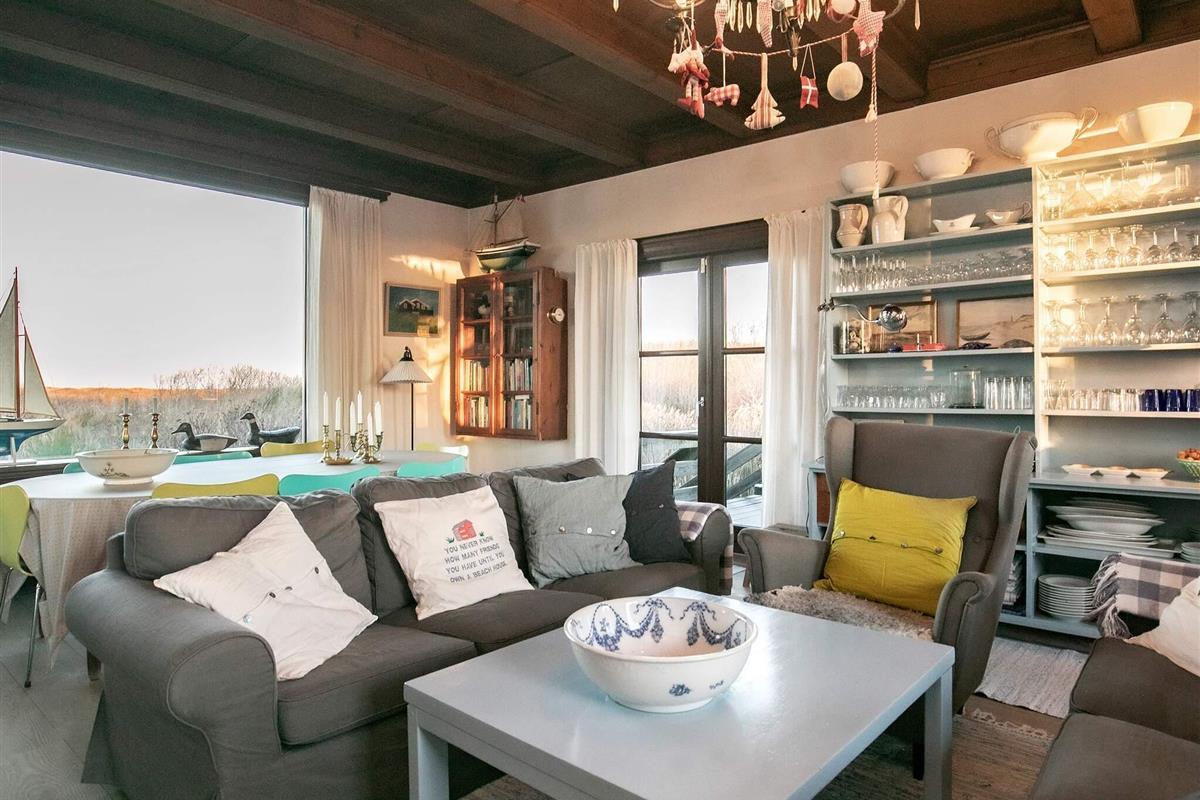 Zudem wurde es geschmackvoll und stilsicher eingerichtet und vermittelt so ein wunderbares Ambiente. Vom Wohnbereich gelangt man auf eine 70 m² große Aussichtsveranda, von der man einen phantastischen Ausblick über die Umgebung und auf das Wasser genießt. 2000 wurde im Haus eine neue Küche installiert. Ebenfalls wurde eine energiesparende Wärmepumpe installiert. Im Wohnzimmer tragen Kamin und Dachbalken zu einer angenehm wohnlichen Atmosphäre bei. Das Grundstück reicht bis an den Strand heran. In südlicher Richtung finden Sie die einzigartige Wanderdüne Råbjerg Mile, die bei jedem Wetter besuchenswert ist.