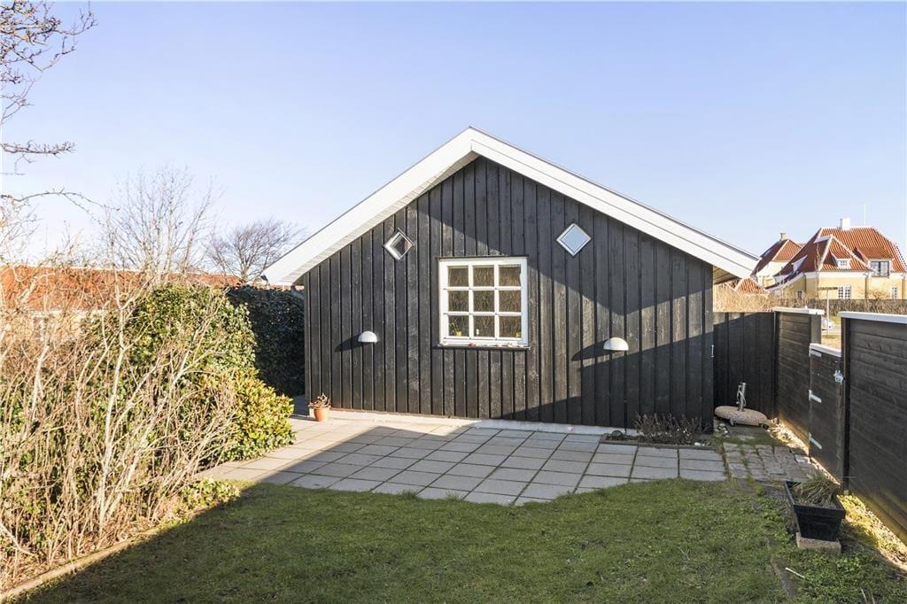 Das Nebengebäude verfügt über einen eigenen kleinen, geschlossenen Gartenbereich, in dem du Privatsphäre und Ruhe genießen kannst. Hier findest du eine schöne Terrasse und eine kleine Rasenfläche, die zum Entspannen mit einem guten Buch oder einer Tasse Kaffee in der Sonne einlädt. Am Abend kannst du Familie oder Freunde zu einem gemütlichen Abendessen im Freien versammeln, während du die typische Ruhe und Atmosphäre von Skagen genießt.