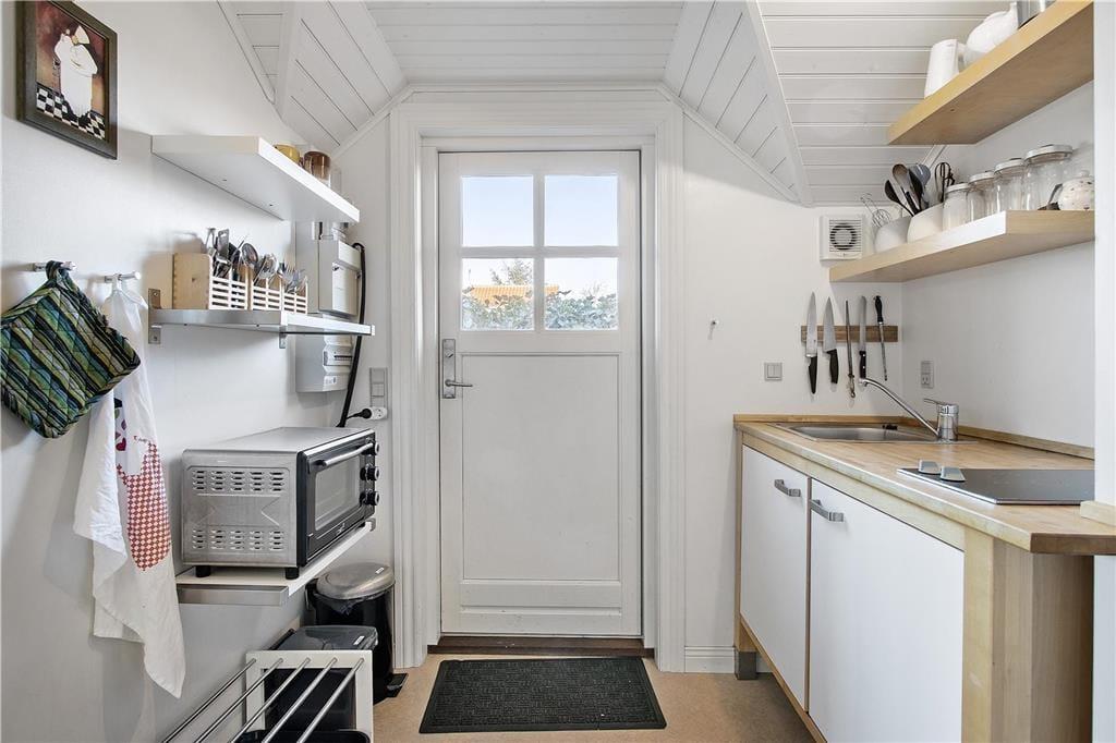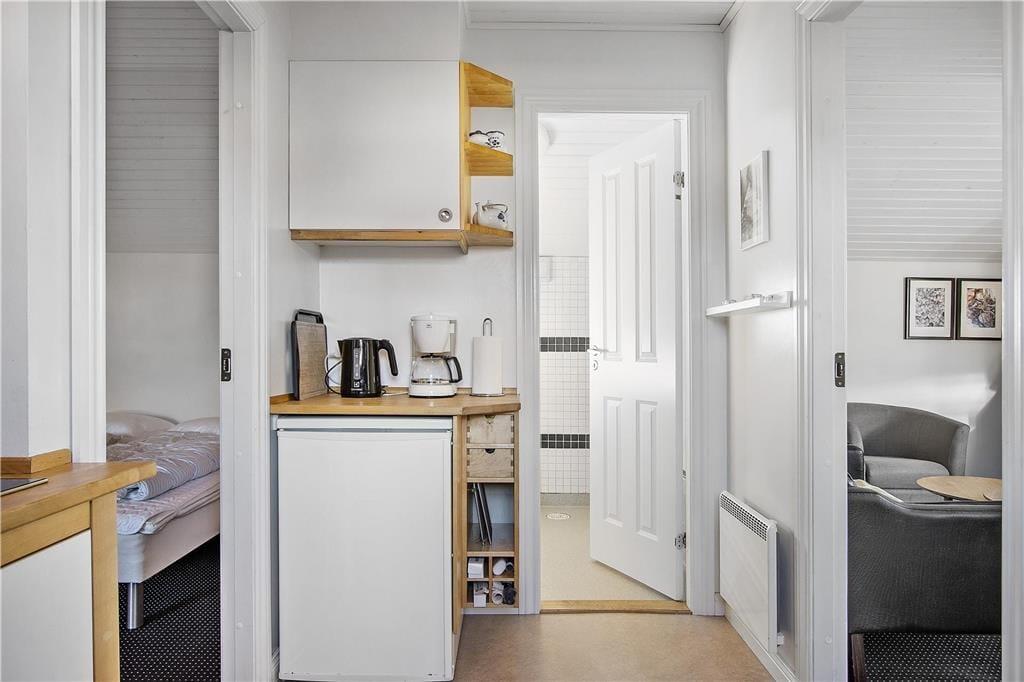 Skomagergangen 5 bietet ein echtes Ferienhausgefühl in einem gemütlichen Nebengebäude, das durch seine einzigartige Lage den perfekten Ausgangspunkt für Strandtage, Stadtbummel und die lebhafte Atmosphäre des Hafens bietet.