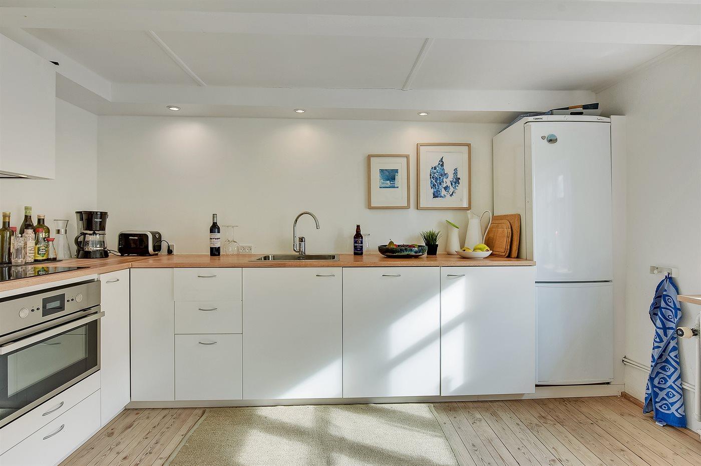 De keuken is uitgerust met koelkast Er is 4 inductiekookplaten, heteluchtoven en vaatwasser.