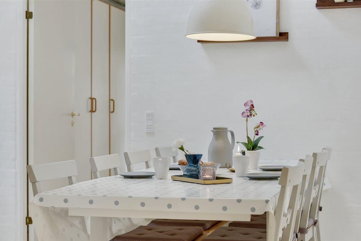 De keuken is uitgerust met koelkast Er is 4 inductiekookplaten, heteluchtoven, magnetron en vaatwasser.