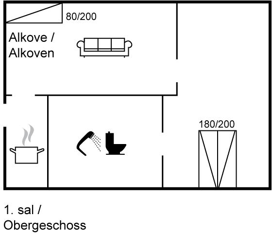 Er zijn in totaal 1 slaapkamer. De slaapplaatsen zijn als volgt verdeeld: 2 slaapplaatsen in tweepersoonsbed. 1 slaapplaats op matras. 1 slaapplaats in alkoof. 2 van deze slaapplaatsen bevinden zich in de huiskamer.