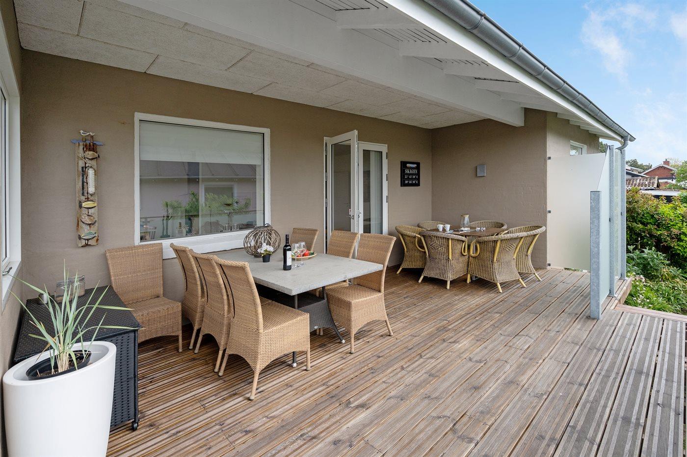 Ruim vakantiehuis vlak bij zee in Skagen met 4 slaapkamers, tuin, overdekt terras en moderne voorzieningen.