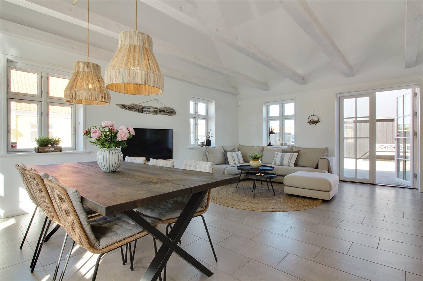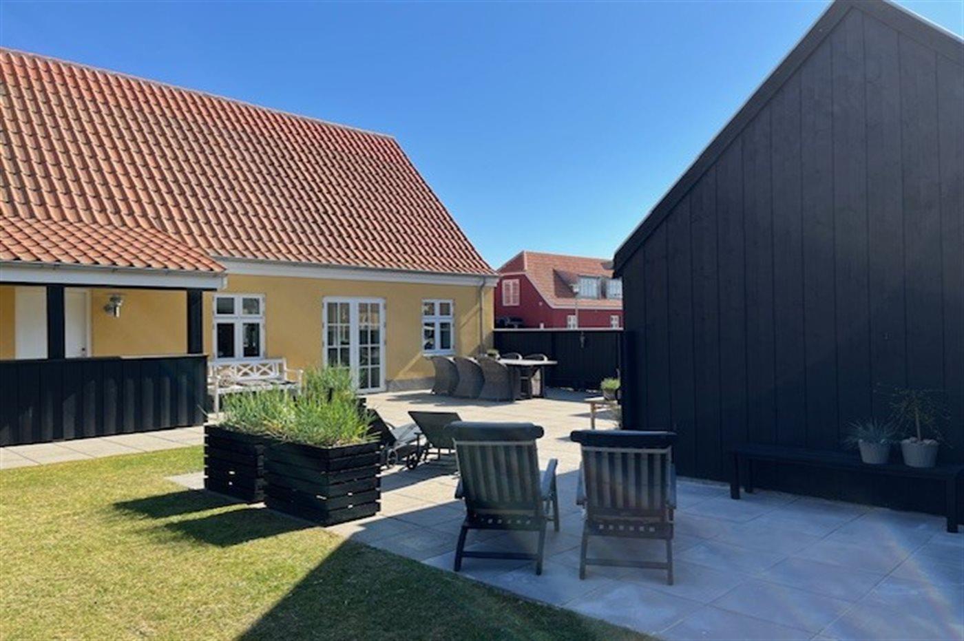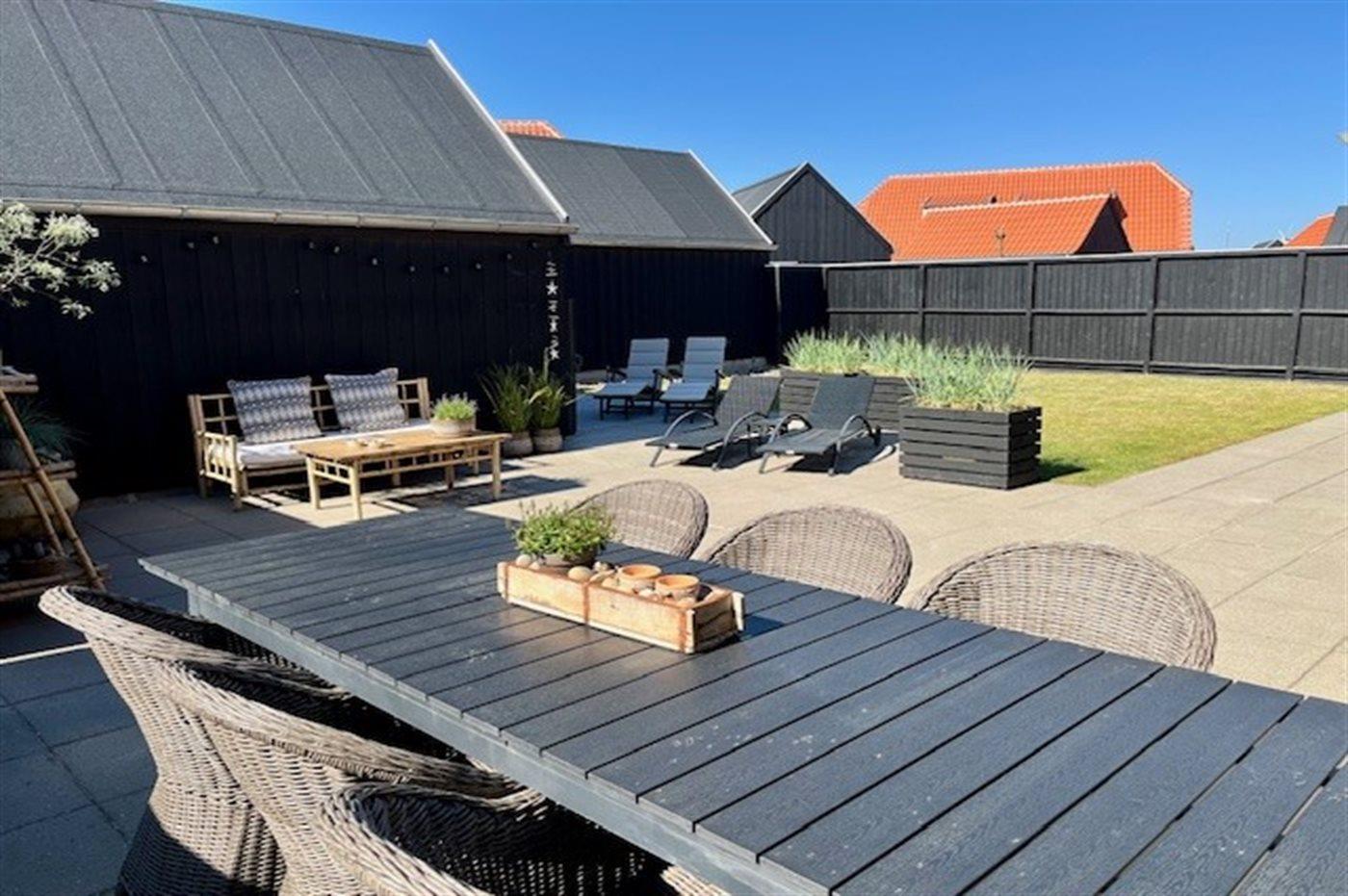 Modern vakantiehuis in Skagen met terras, elektrische laadpaal en vloerverwarming, ideaal voor een ontspannen verblijf.