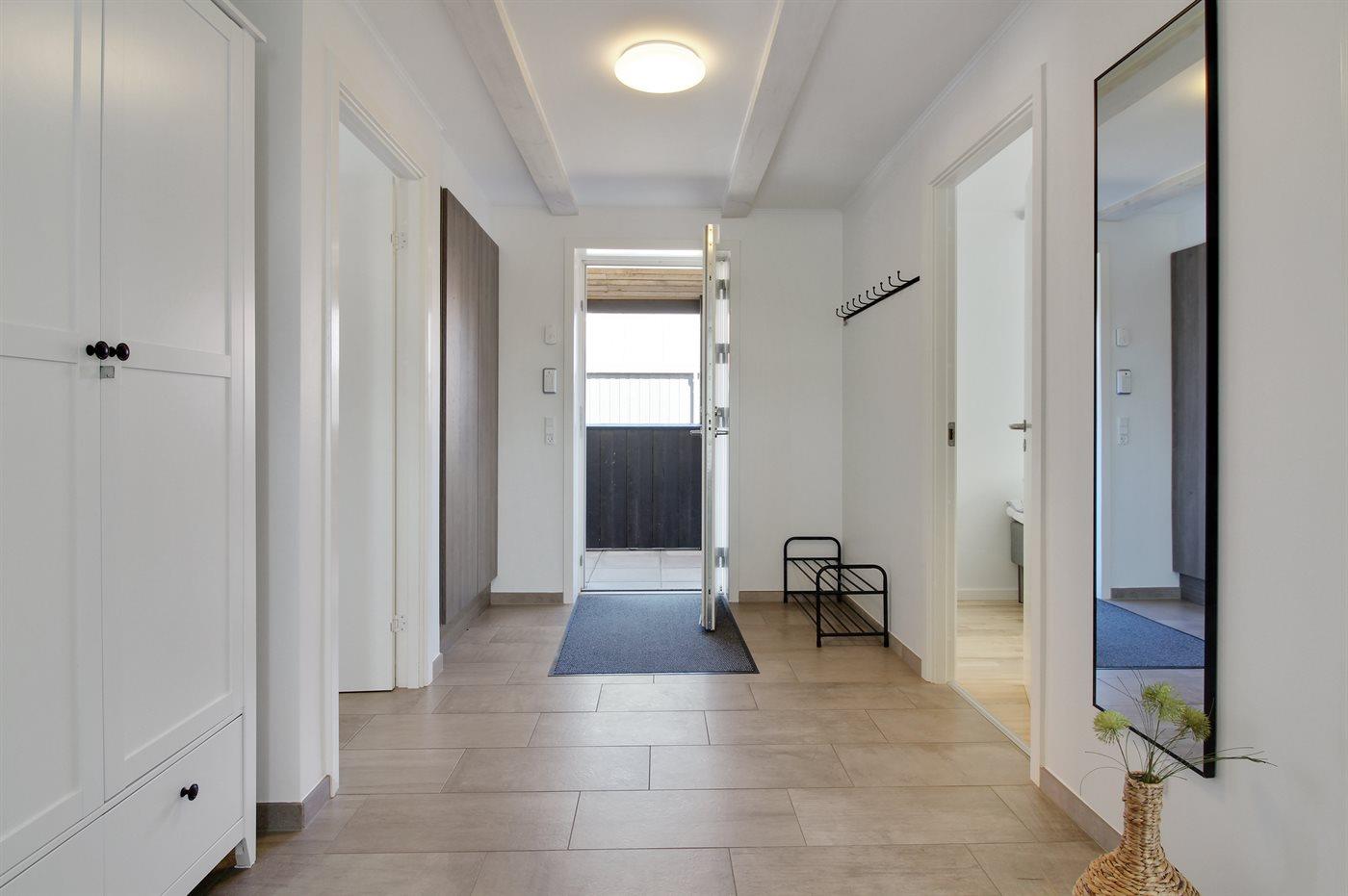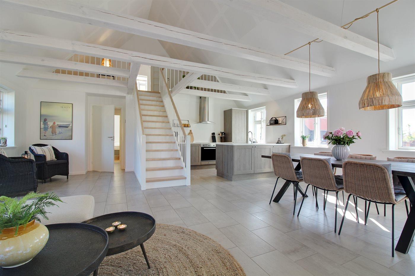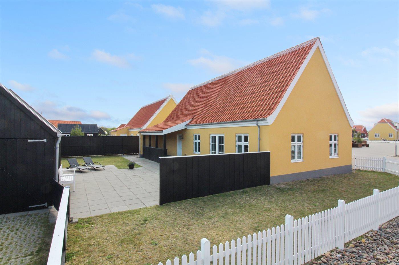Modern vakantiehuis in Skagen met terras, elektrische laadpaal en vloerverwarming, ideaal voor een ontspannen verblijf.