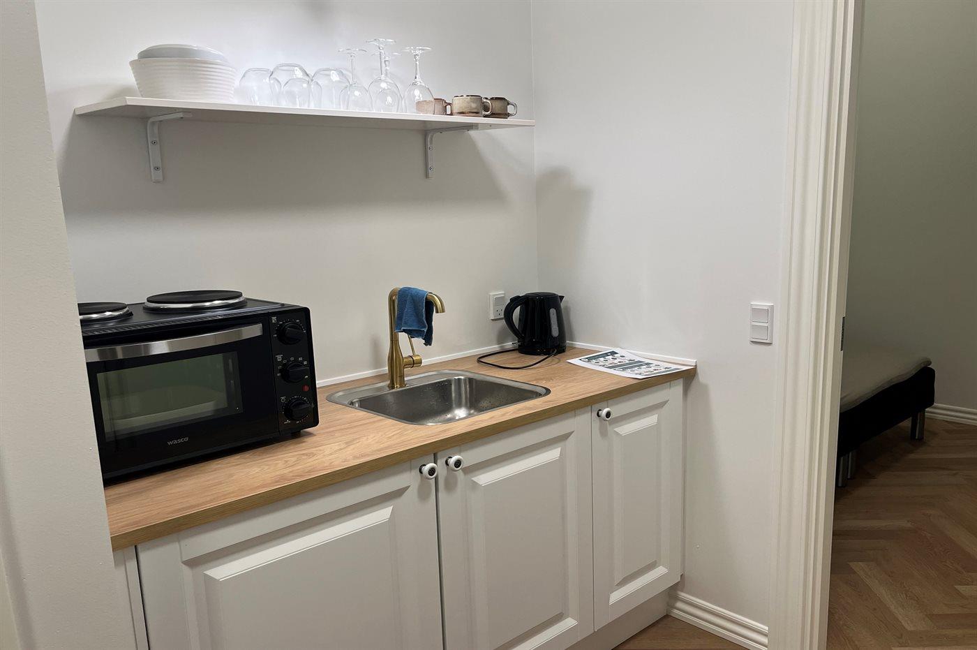 De keuken is uitgerust met koelkast Er is 2 elektrische kookplaten, mini-oven.