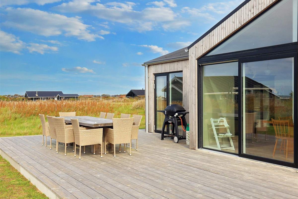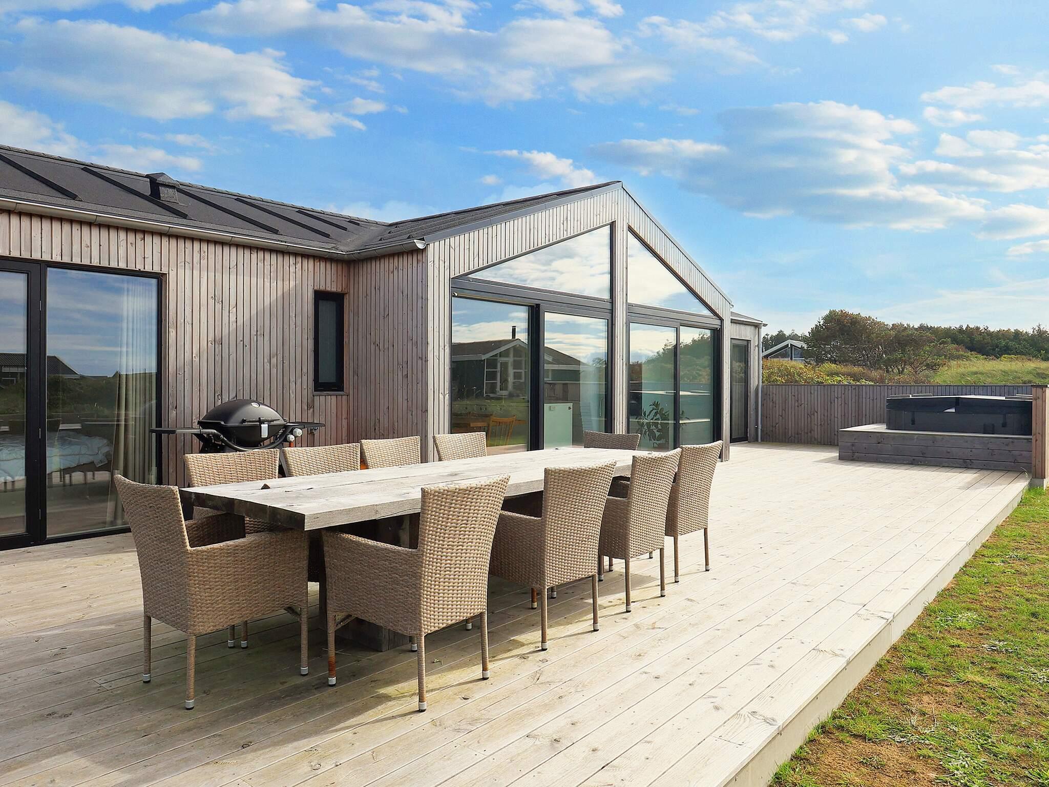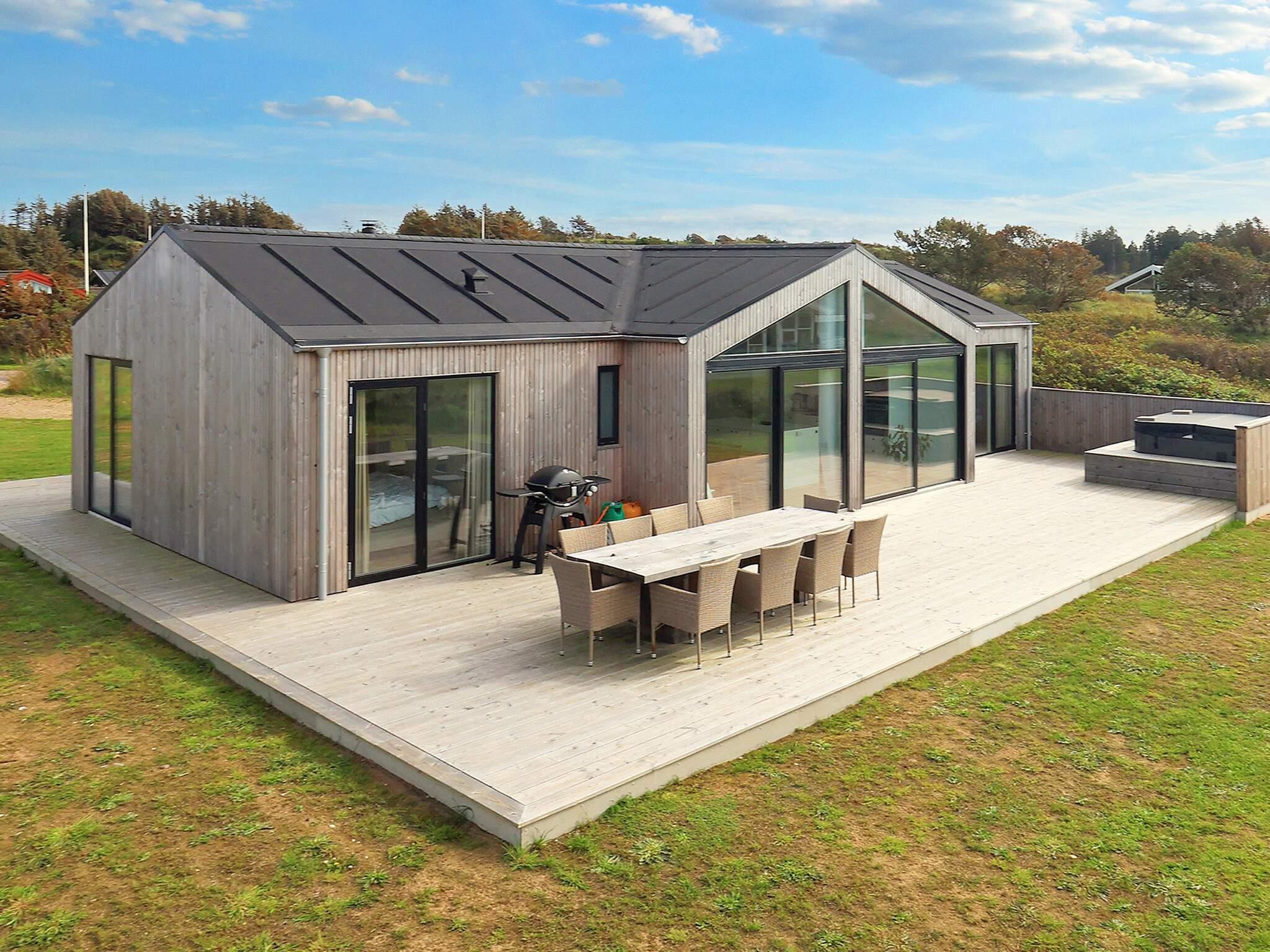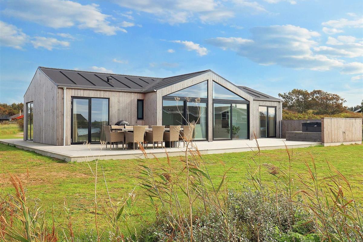 Modernes Ferienhaus, für die Saison 2021 aus hochwertigen Materialien erbaut. Zur umfassenden Ausstattung gehören auch ein Außen-Whirlpool und eine attraktive Lage mit Blick bis zur Nordsee.