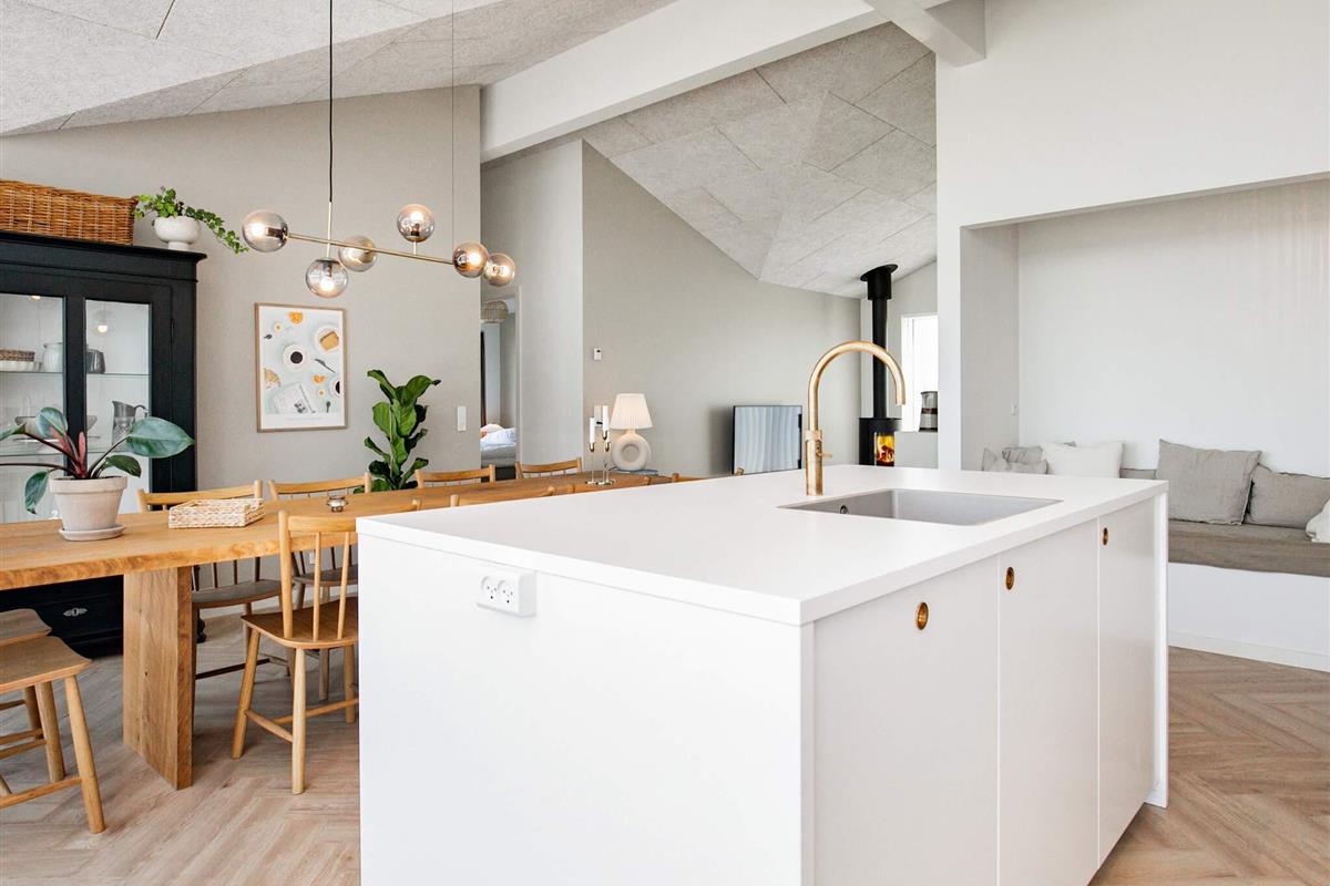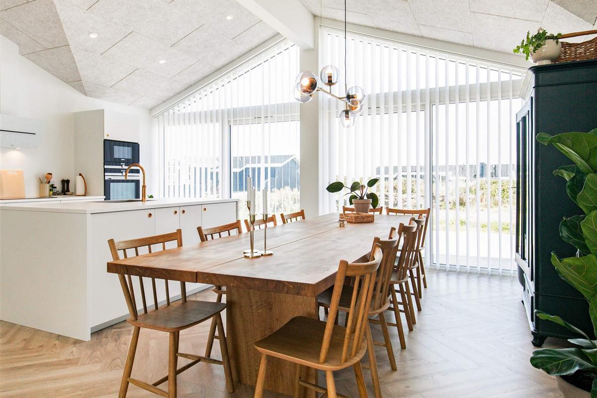 Ein Feriendomizil mit viel Komfort für den anspruchsvollen Gast, der weder bei Stil noch Qualität Abstriche machen möchte. Sie betreten zunächst den Eingangsbereich des Ferienhauses und gelangen weiter zum offenen Küchen-/Wohnbereich für das Familienleben, der ebenfalls modern und hochwertig eingerichtet ist. Von allen Seiten fällt ein schönes Licht durch die großen Panoramafenster, die zudem fantastischen Ausblick zum schönen Ferienhausgebiet mit der Nordsee im Hintergrund bieten.