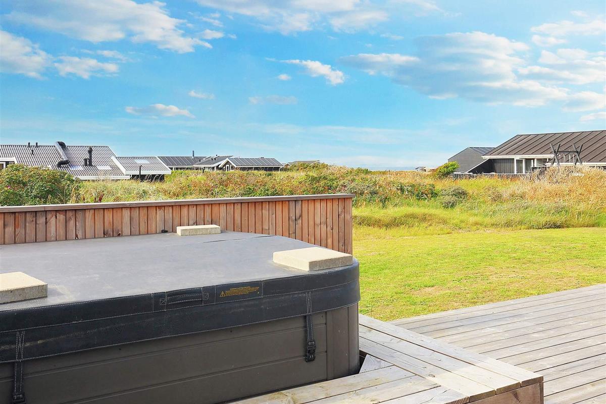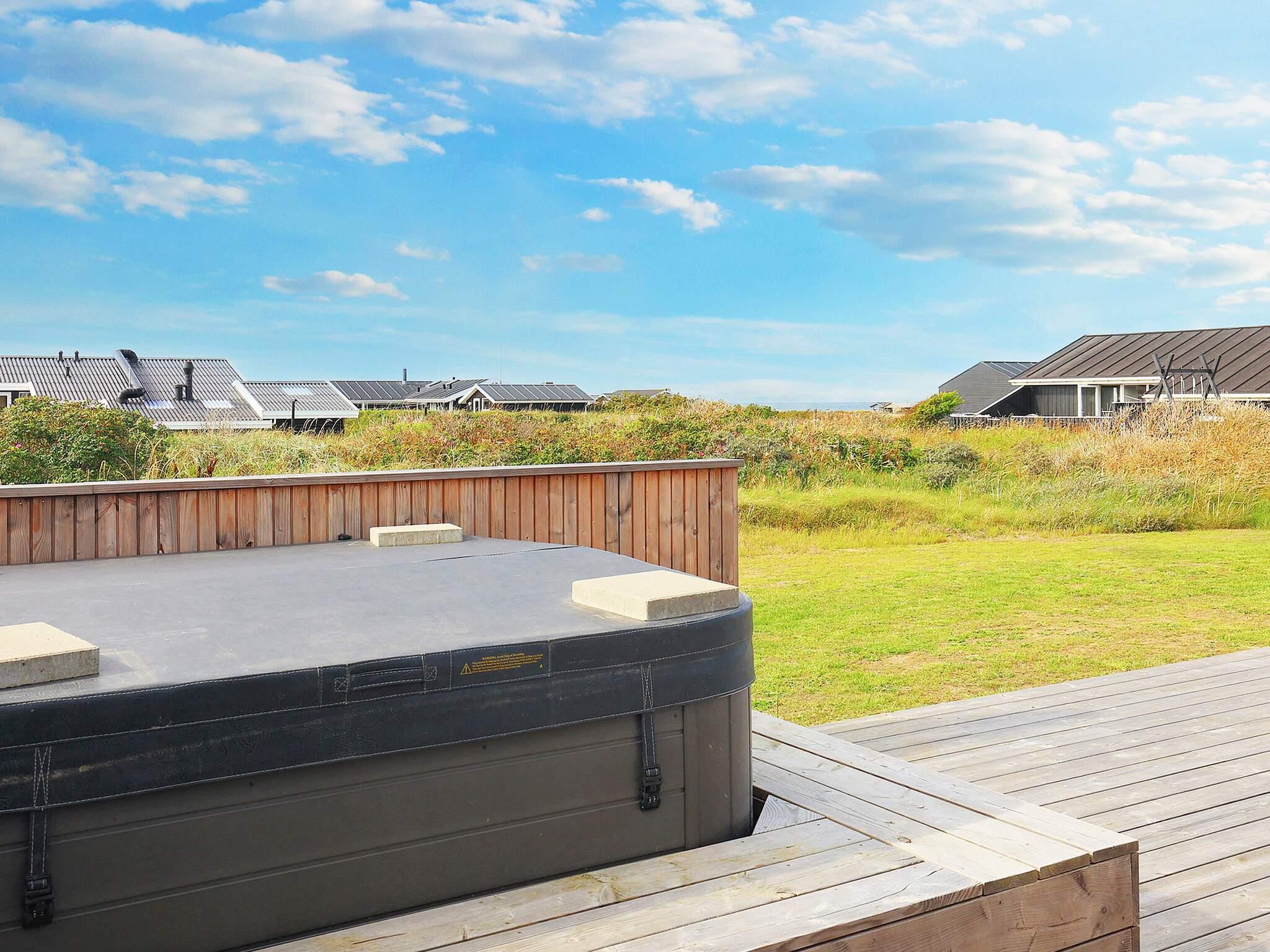 Im Ferienhaus gibt es auch vier gute Schlafzimmer und zwei schöne Badezimmer. Das Haus liegt auf einem attraktiven Naturgrundstück ganz in der Nähe des breiten, autofreien Strandes. Die Aussicht kann man selbstverständlich ebenfalls genießen, wenn man draußen auf der Terrassenfläche Platz nimmt, die sich quasi einmal um das Haus herum erstreckt. Auf dem nach Süden ausgerichteten Tiel wurde der große Outdoor-Whirlpool für Entspannung im Freien aufgestellt.