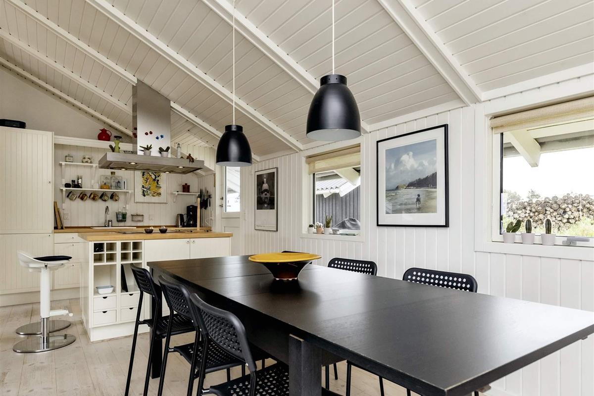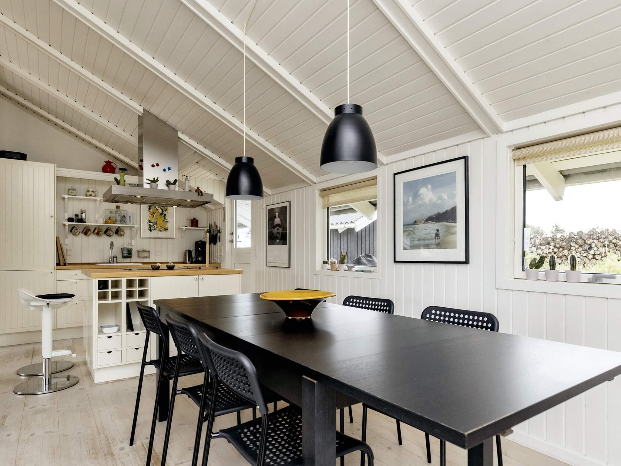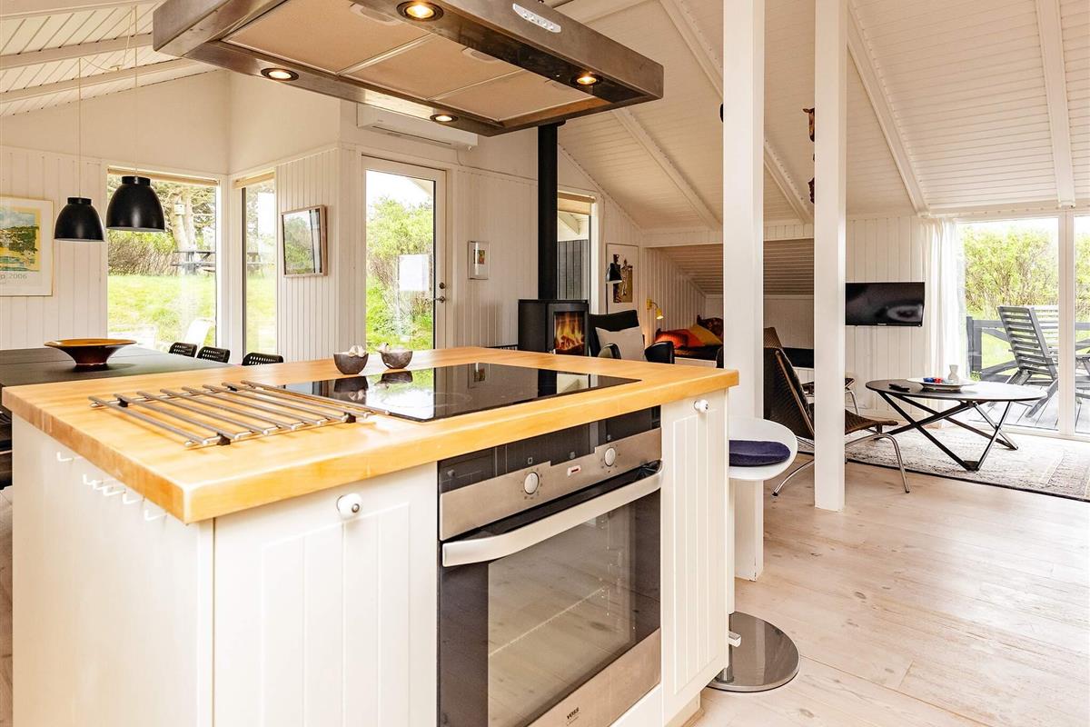 Dieses Ferienhaus verfügt über eine große, offene Wohnküche mit gemütlichem Holzofen. Der Raum besteht aus einer funktionalen Küche und einem geräumigen Wohnbereich. Hier gibt es viel Platz für die Familie. Zwei Schlafzimmer mit Doppelbett und ein Badezimmer. Dazu im Wohnzimmer eine gemütliche Schlafnische mit zwei weiteren Schlafplätzen. In Verbindung mit einer Terrasse wurde ein gemütlicher, separater Annex mit zwei zusätzlichen Schlafplätzen erbaut, der alternativ genutzt werden kann.