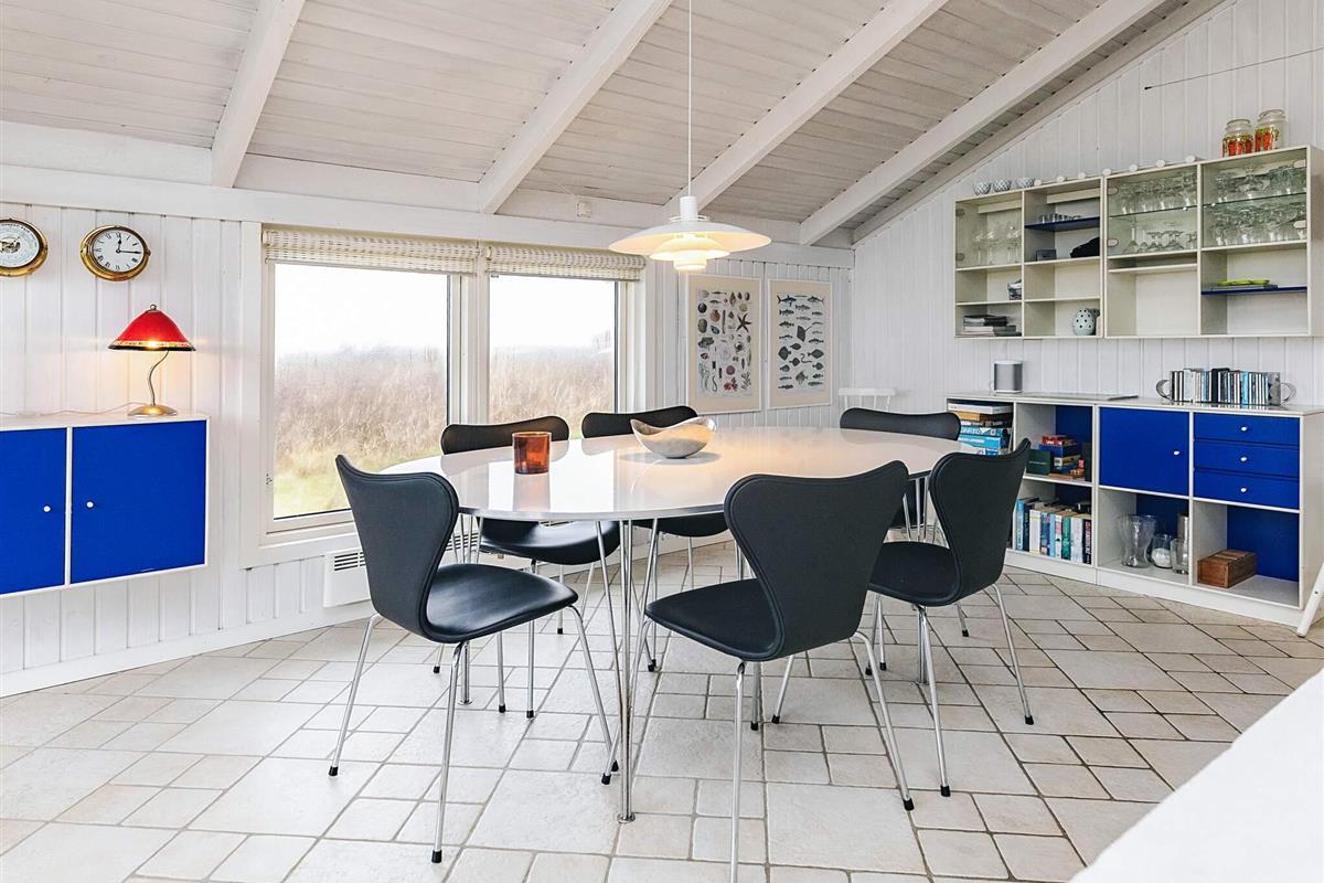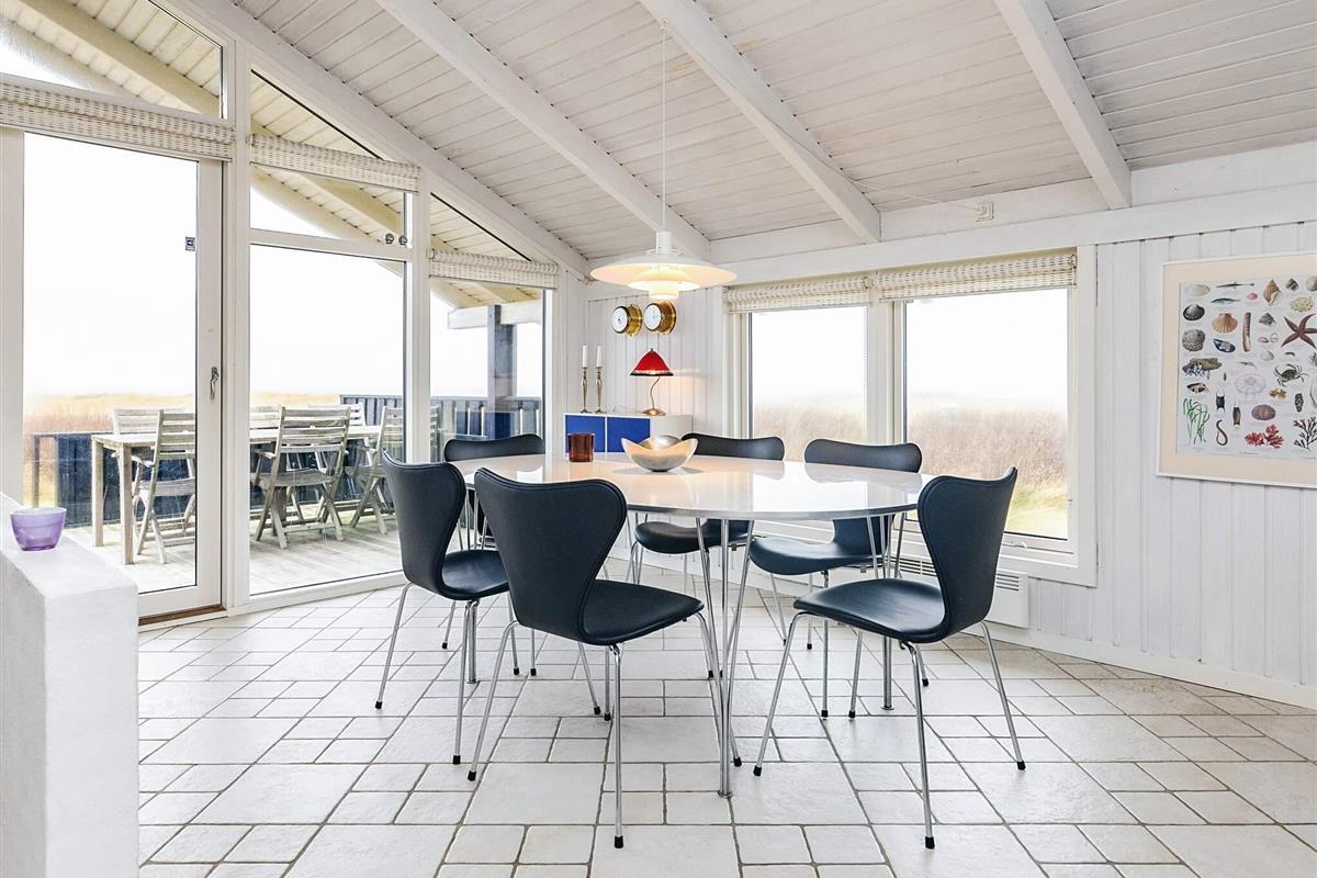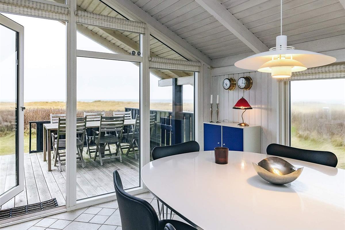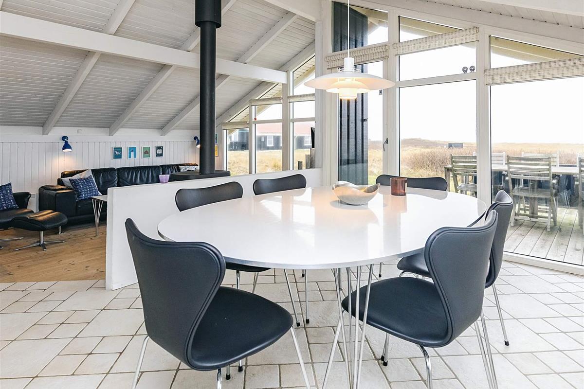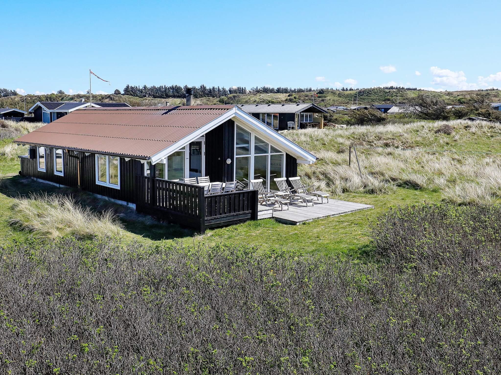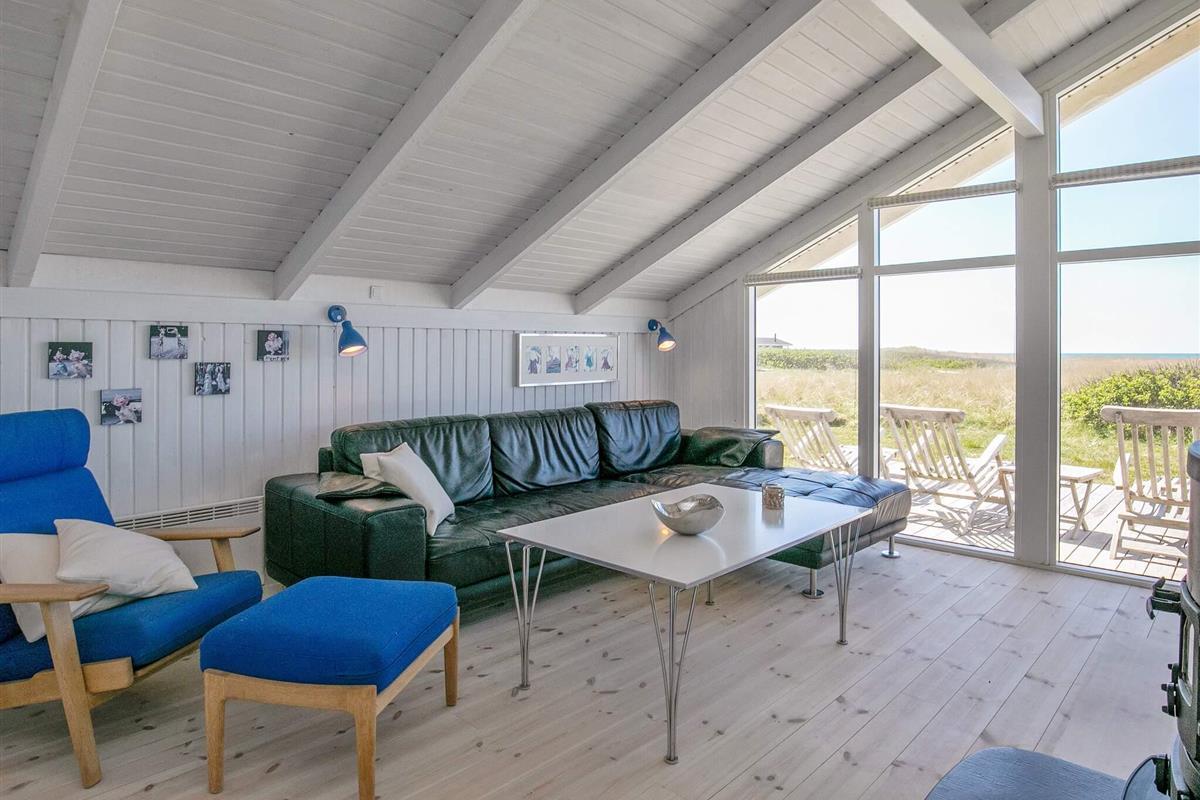 Ferienhaus mit großartiger Panoramaaussicht zur Nordseeküste! Die Einrichtung ist hell und modern, in typisch dänischem Design gestaltet und vermittelt ein wohnliches Ambiente. Die große Fensterfront trägt im Wohnbereich maßgeblich zu viel Helligkeit und Tageslicht sowie schönem Ausblick in die reizvolle Dünenlandschaft und bis zur Küste bei. Diese Aussicht ist wirklich einzigartig und atemberaubend!